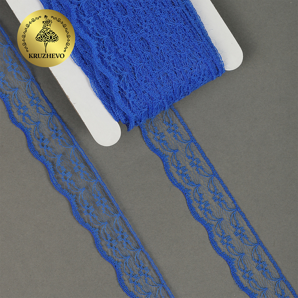 Кружево отделочное в стиле "трикотаж" 20 мм, цв.синий, 27,4м