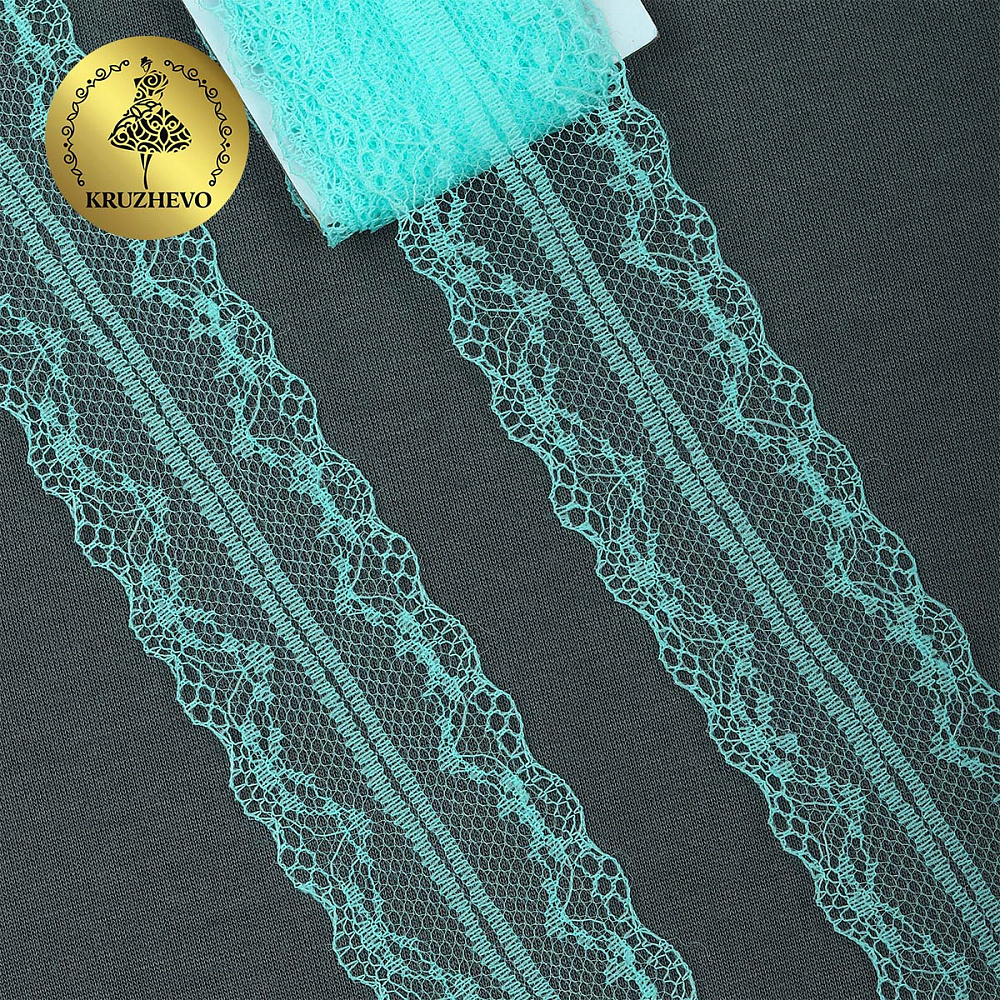 Очень красивое и нежное кружево-трикотаж. Большая палитра оттенков, различная ширина и разнообразные рисунки. Кружево-трикотаж можно использовать для разных сфер дизайна — отделки нижнего белья, халатов, маек, повседневной и праздничной одежды, изготовлении аксессуаров. Кружево не эластичное!