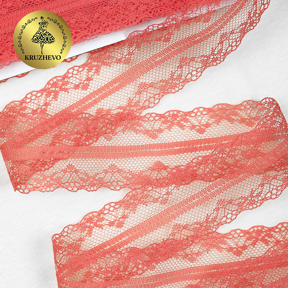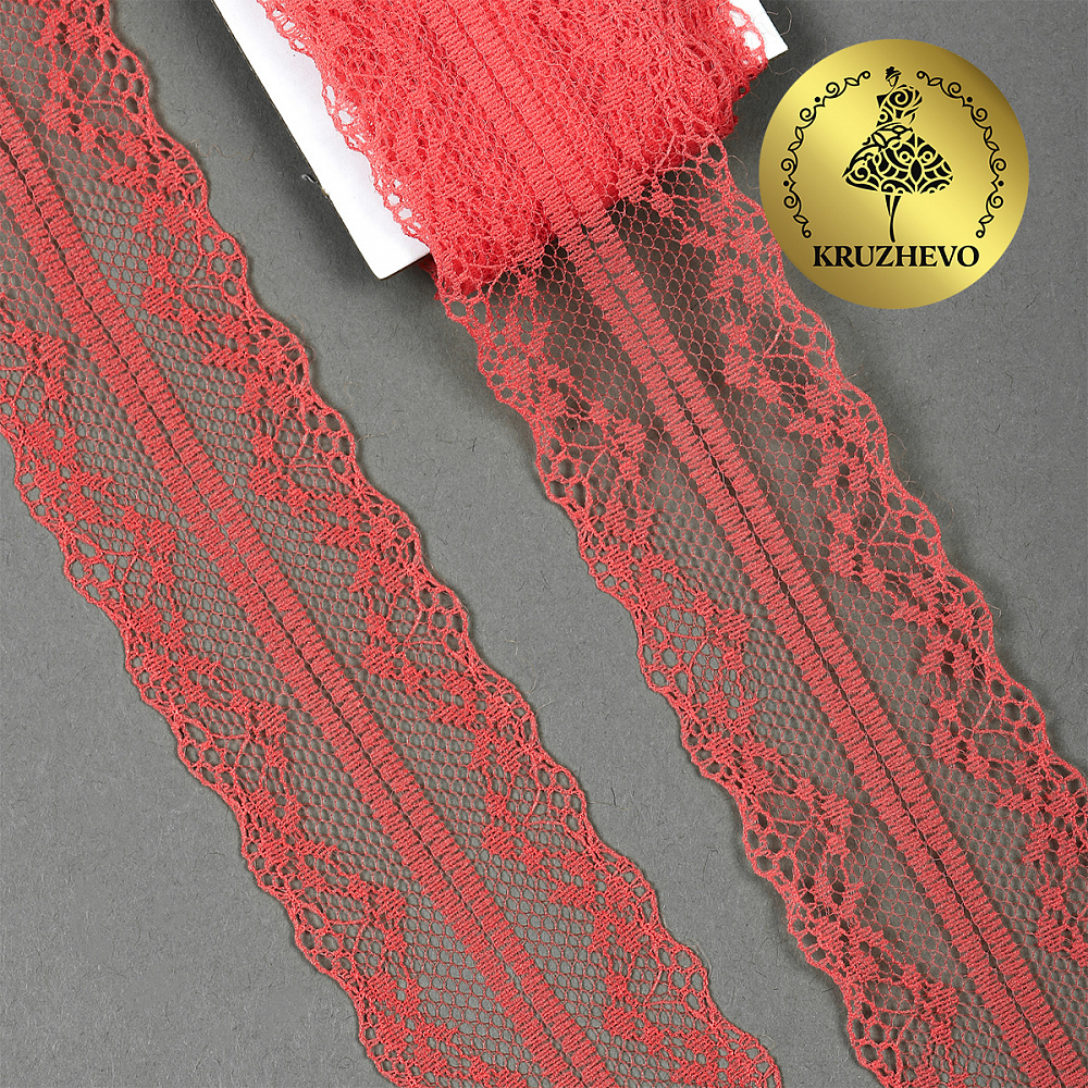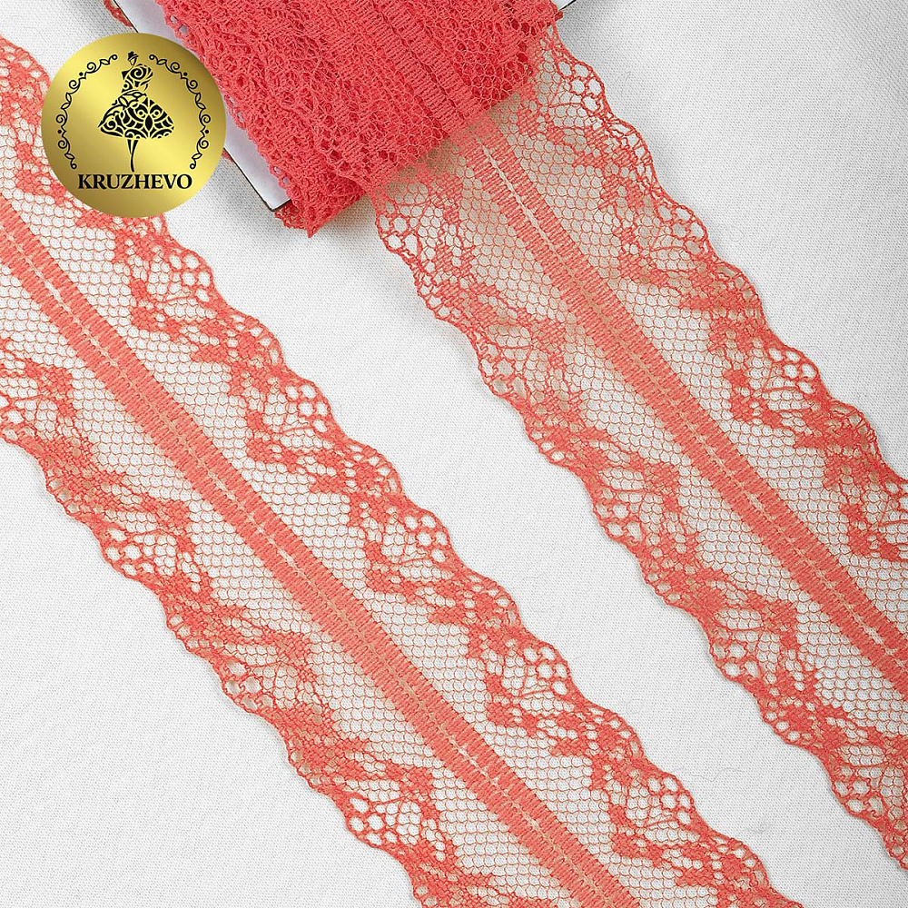 Кружево отделочное в стиле "трикотаж" 40 мм, 150-1, цв.06 коралл, 9.14м