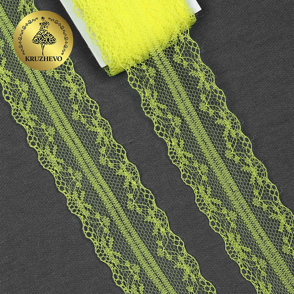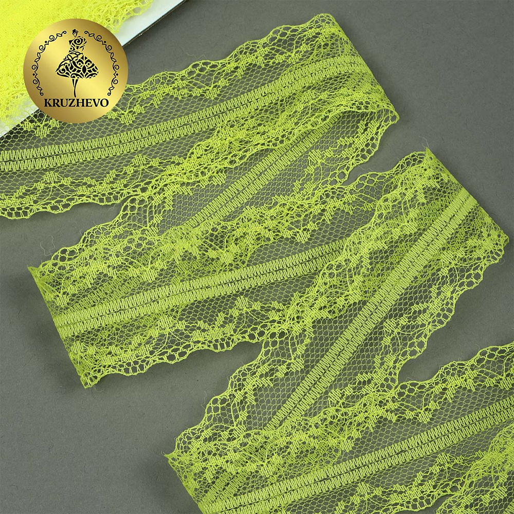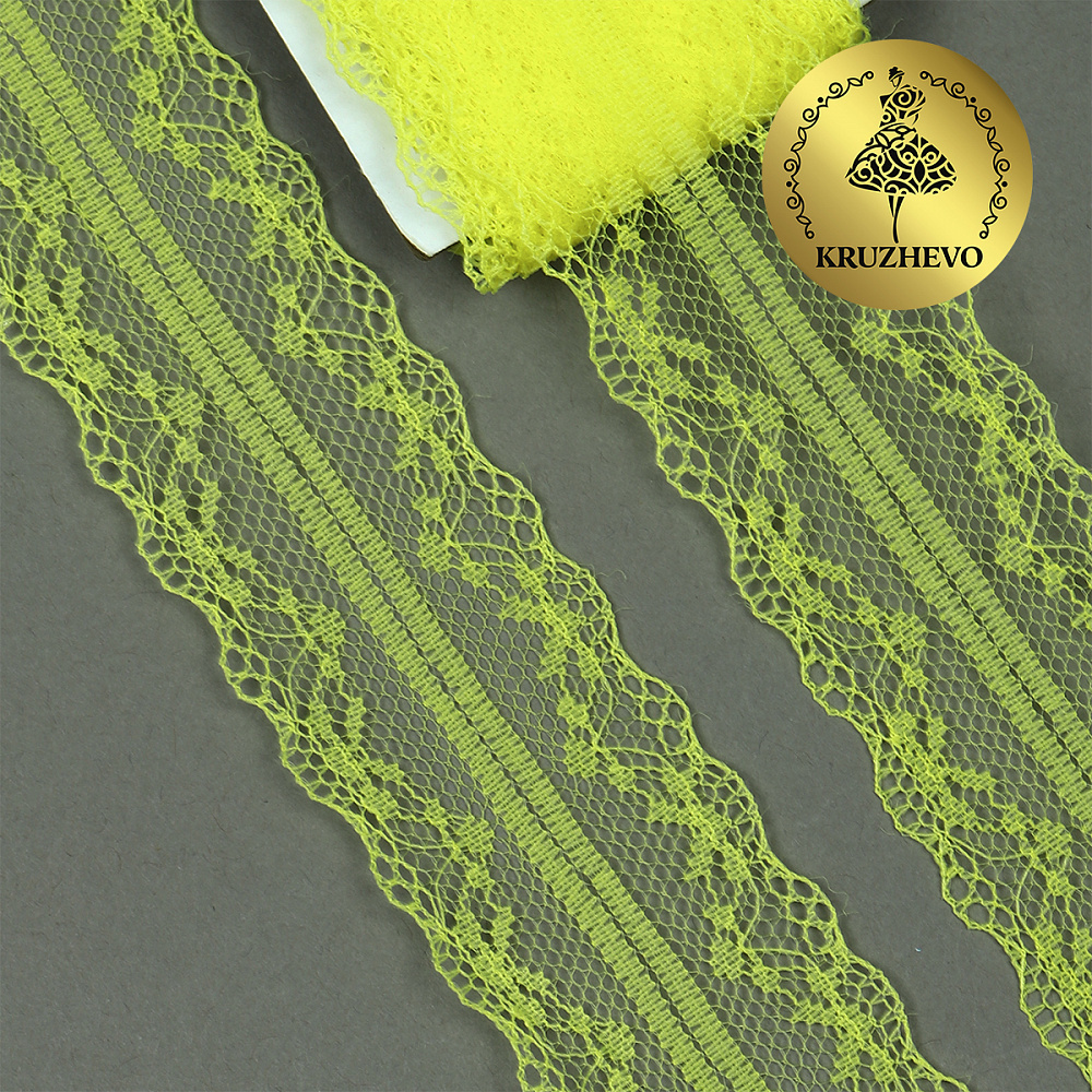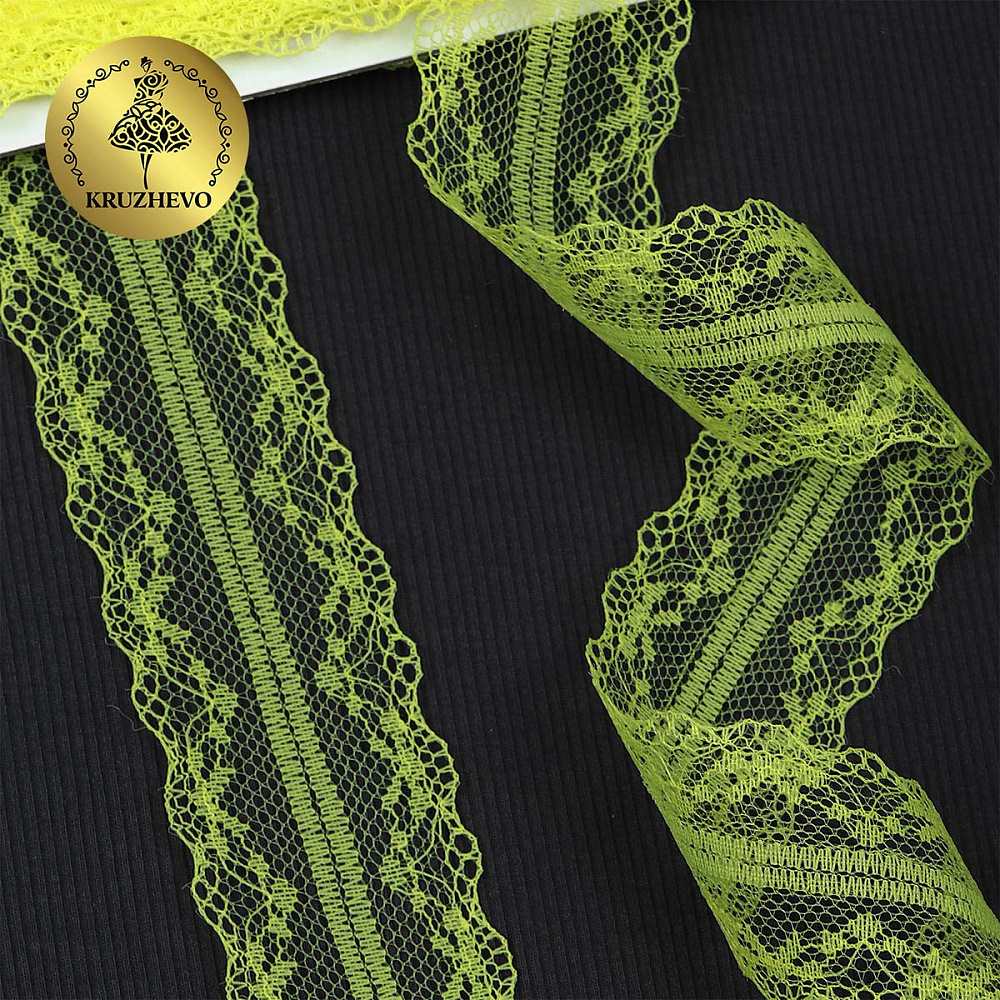 Очень красивое и нежное кружево-трикотаж. Большая палитра оттенков, различная ширина и разнообразные рисунки. Кружево-трикотаж можно использовать для разных сфер дизайна — отделки нижнего белья, халатов, маек, повседневной и праздничной одежды, изготовлении аксессуаров. Кружево не эластичное!