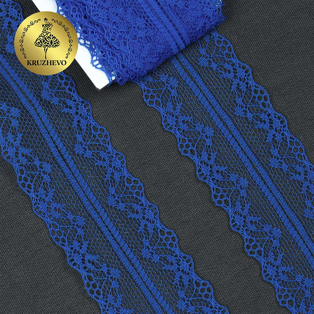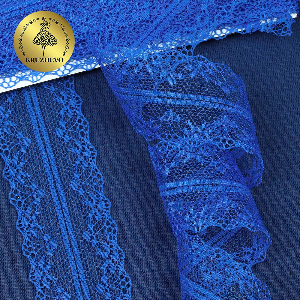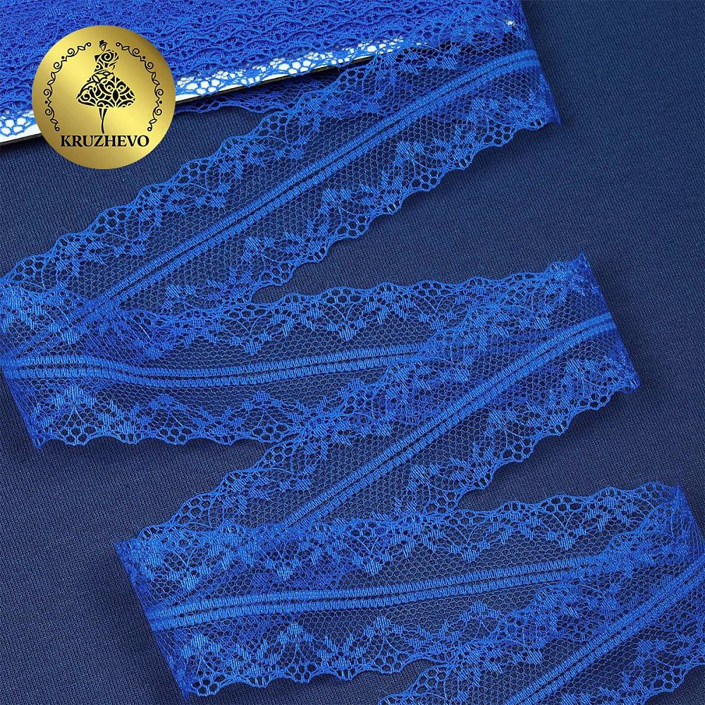 Кружево отделочное в стиле "трикотаж" 40 мм, 150-1, цв.16 синий, 9.14м
