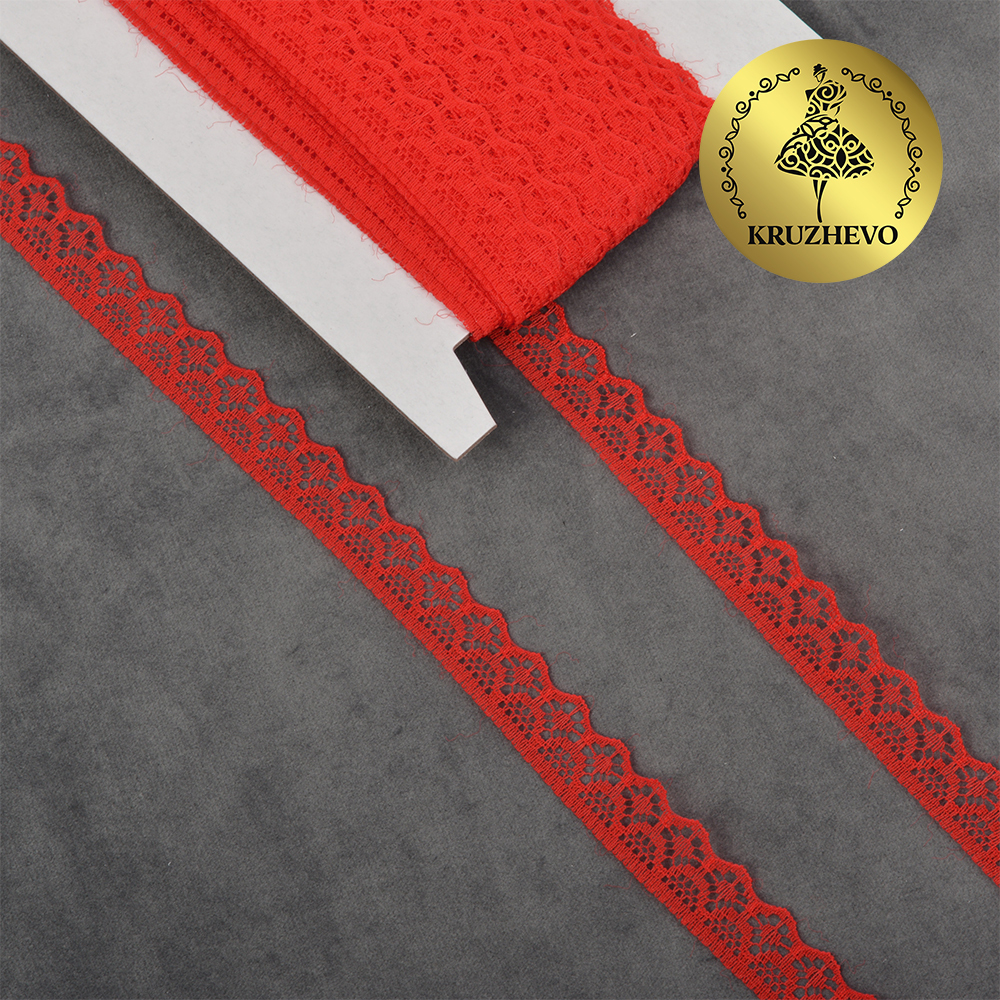 Кружево отделочное в стиле "трикотаж" 12 мм / 9.14 метров, TBY 150-2, цв.03 красный