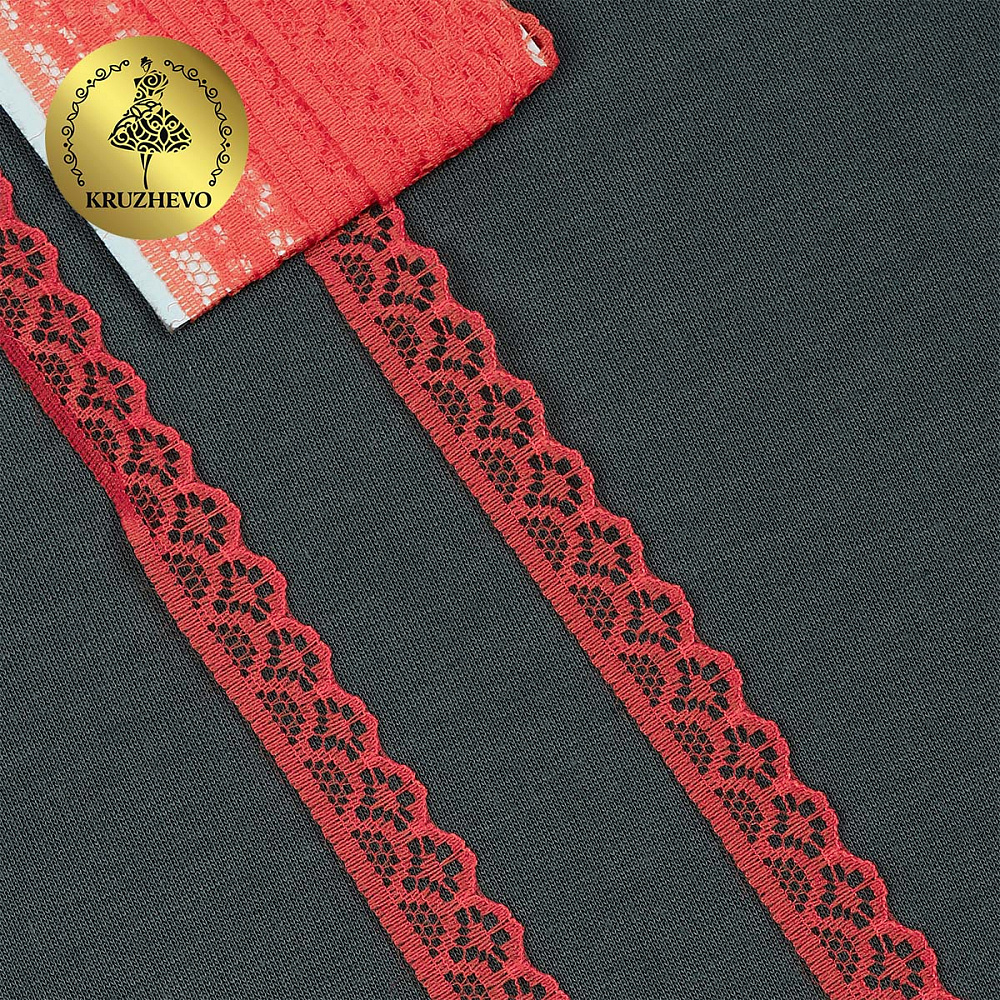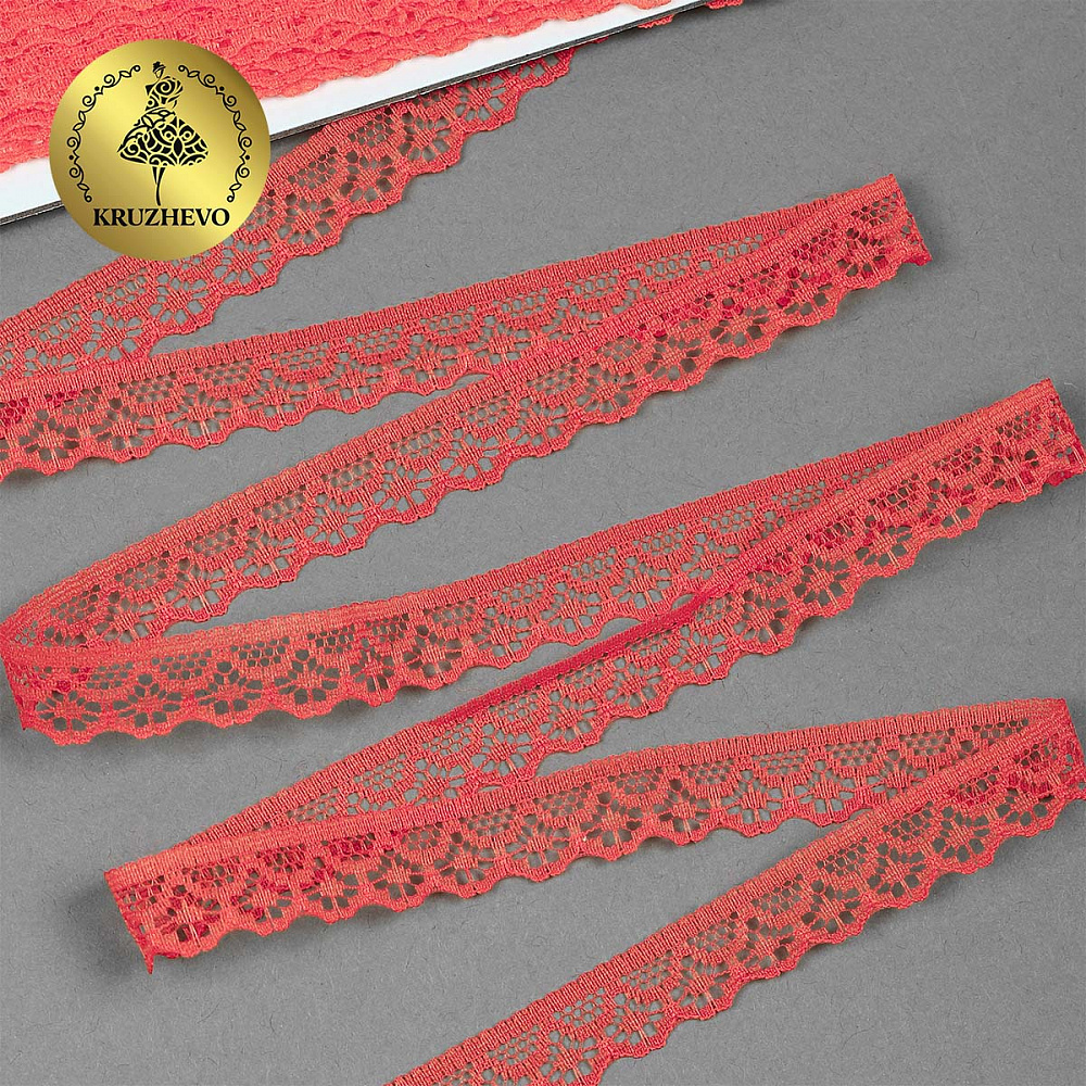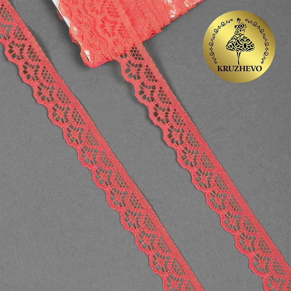 Кружево отделочное в стиле "трикотаж" 12 мм 150-2, цв.04 коралл, 9.14м