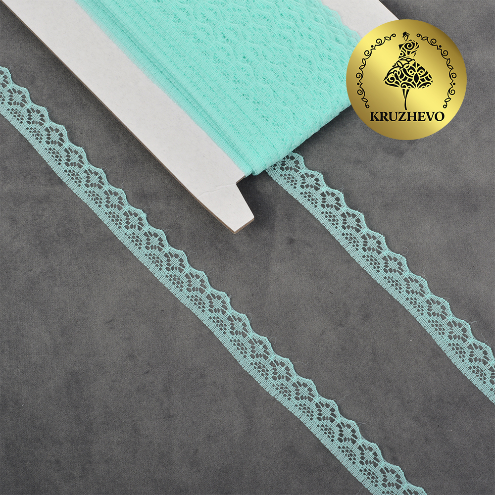 Кружево отделочное в стиле "трикотаж" 12 мм диз. 276, цв.08 мята, уп. 27,4 м
