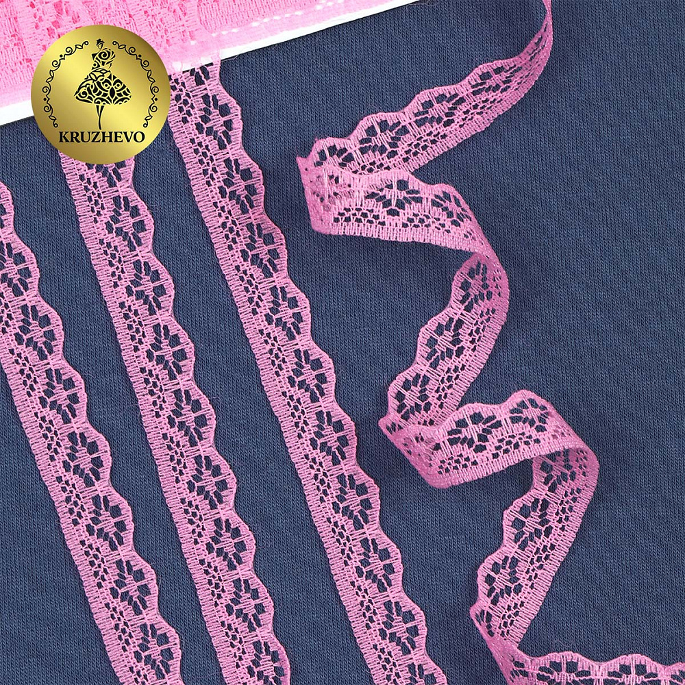 Очень красивое и нежное кружево-трикотаж. Большая палитра оттенков, различная ширина и разнообразные рисунки. Кружево-трикотаж можно использовать для разных сфер дизайна — отделки нижнего белья, халатов, маек, повседневной и праздничной одежды, изготовлении аксессуаров. Кружево не эластичное!