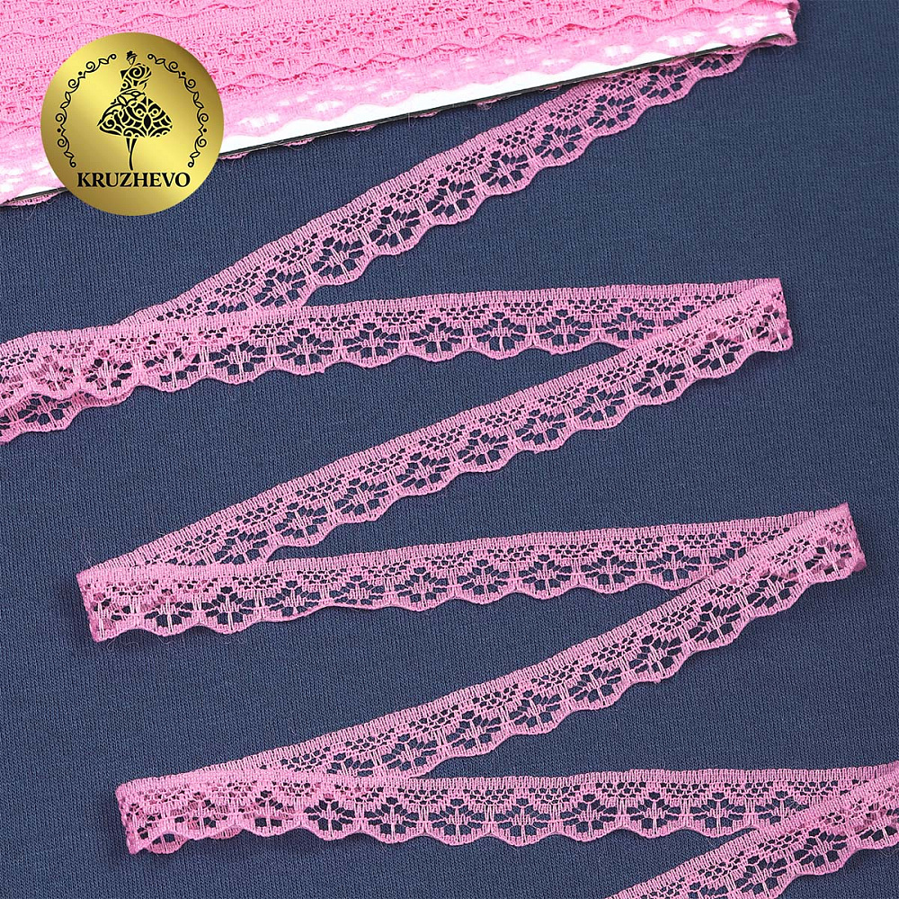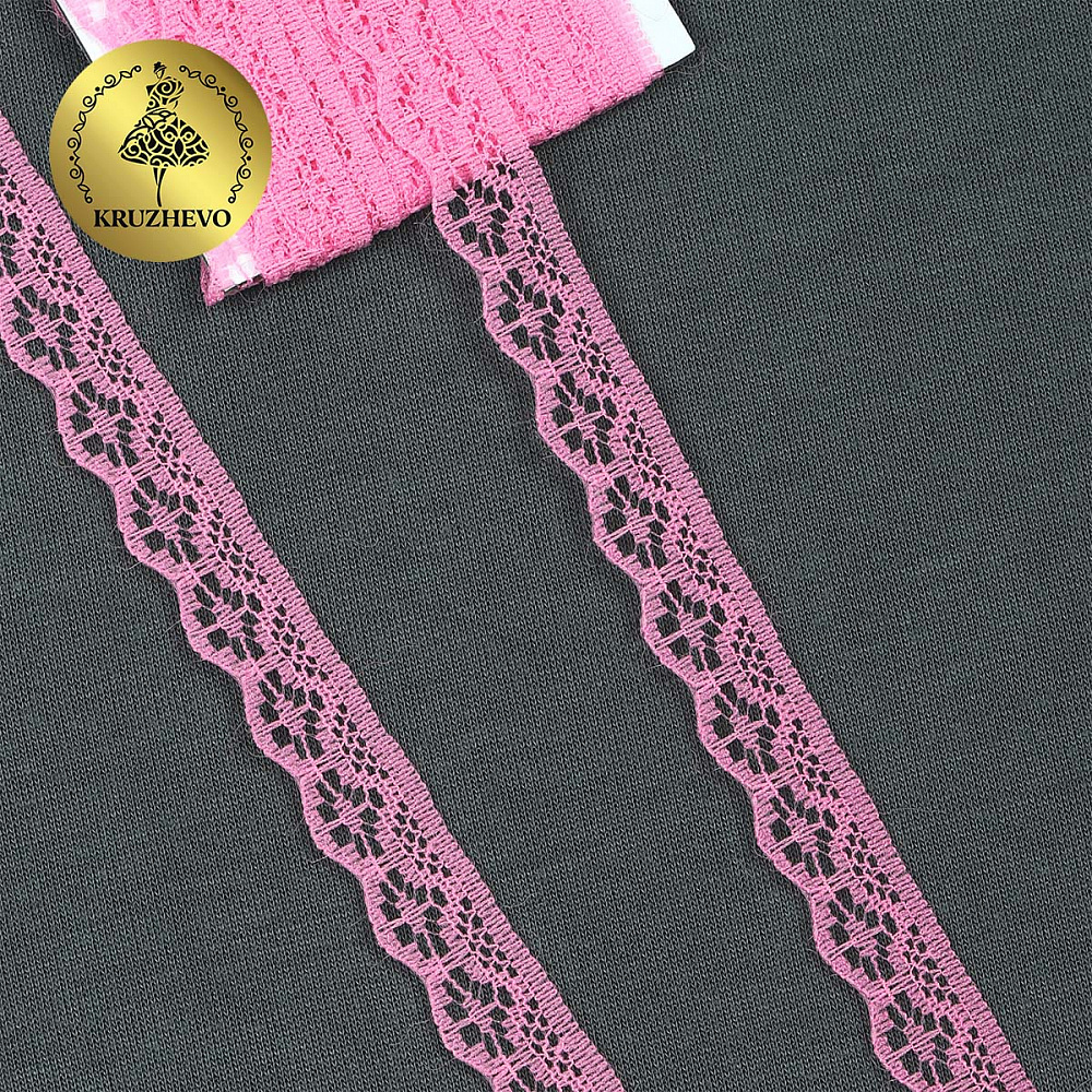 Кружево отделочное в стиле "трикотаж" 12 мм 150-2, цв.08 розовый, 9.14м