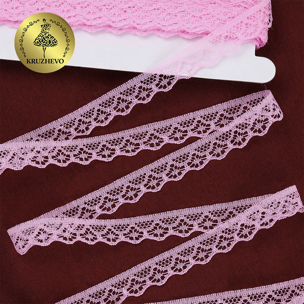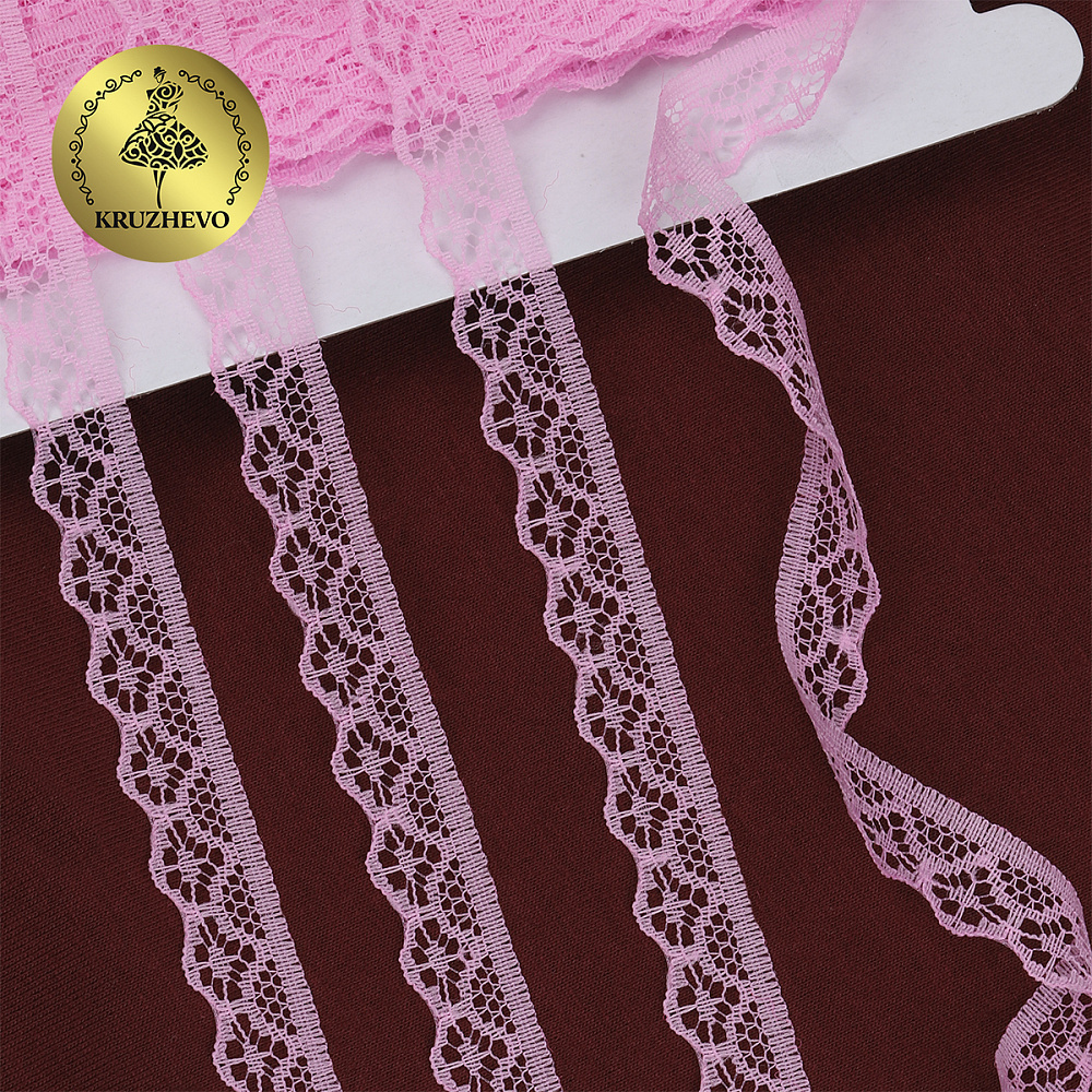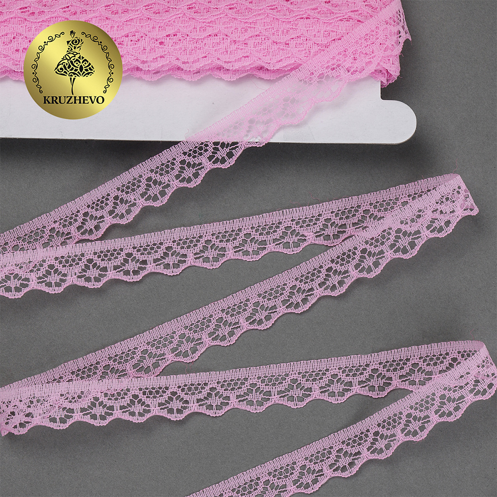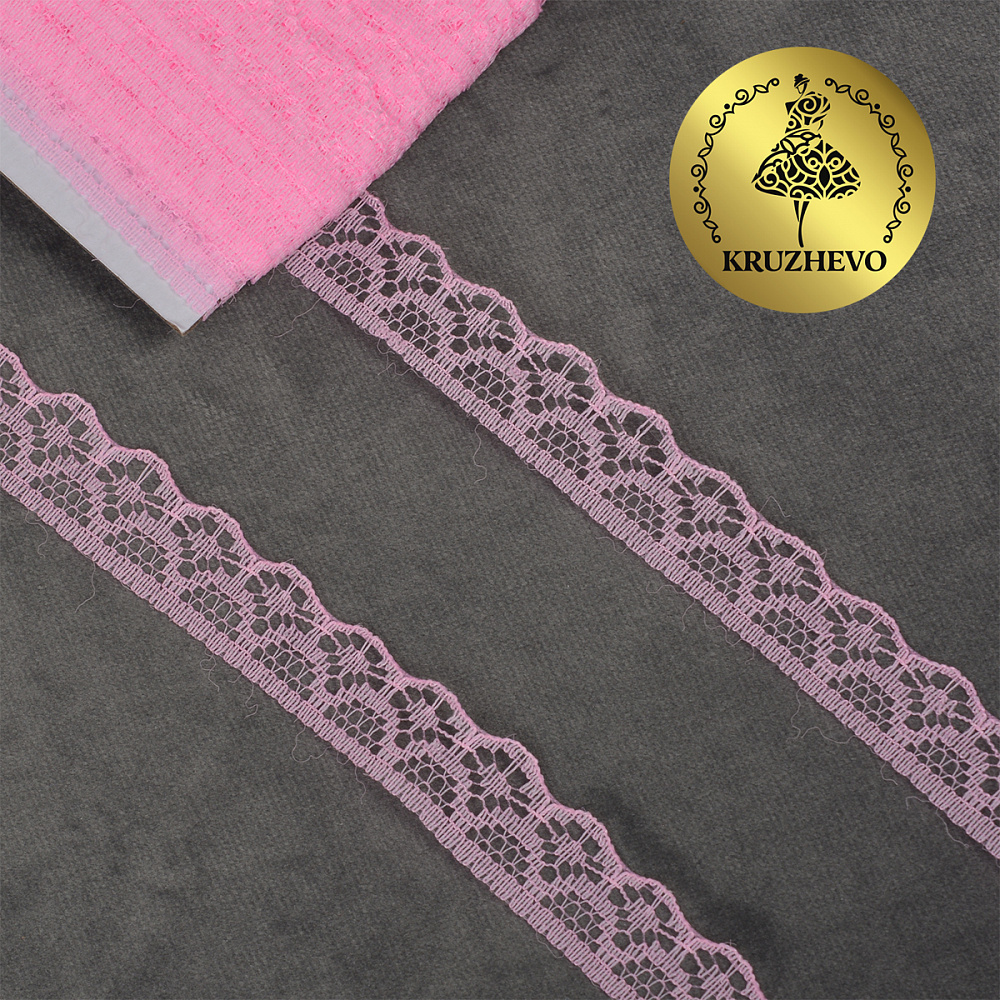 Кружево отделочное в стиле "трикотаж" 12 мм диз. 276, цв.12 розовый, уп. 27,4 м
