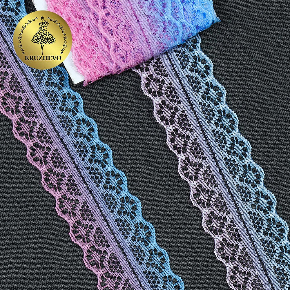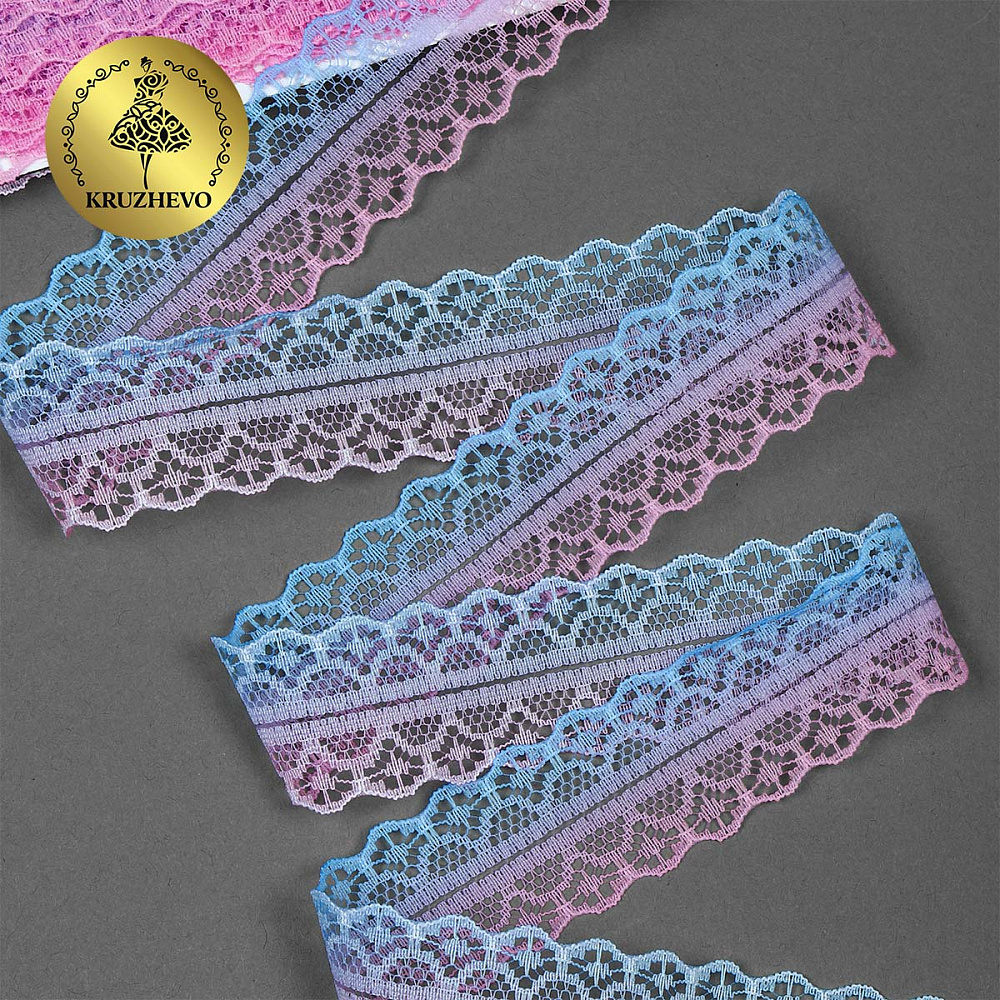 Очень красивое и нежное кружево-трикотаж. Большая палитра оттенков, различная ширина и разнообразные рисунки. Кружево-трикотаж можно использовать для разных сфер дизайна — отделки нижнего белья, халатов, маек, повседневной и праздничной одежды, изготовлении аксессуаров. Кружево не эластичное!