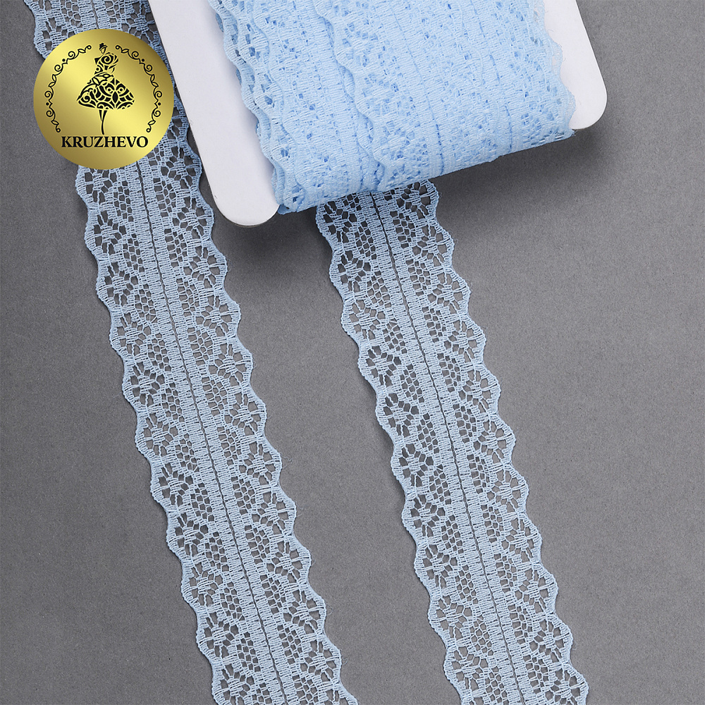 Кружево отделочное в стиле "трикотаж" 30 мм, диз. 277, цв.05 голубой, уп. 27,4 м