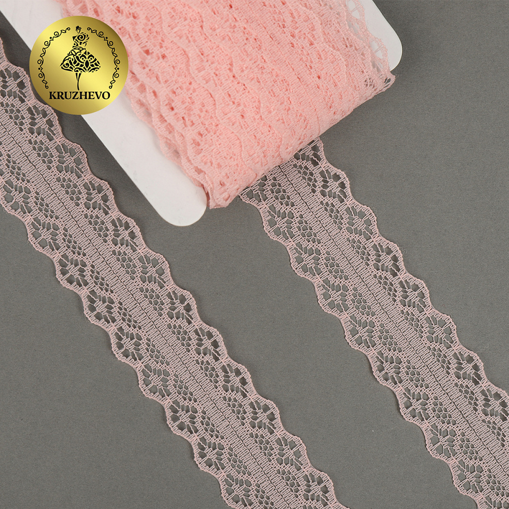 Кружево отделочное в стиле "трикотаж" 30 мм, диз. 277, цв.13 персиковый, уп. 27,4 м
