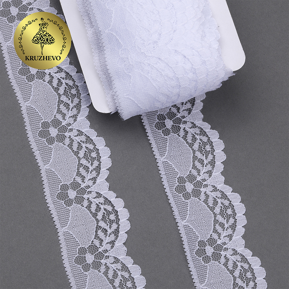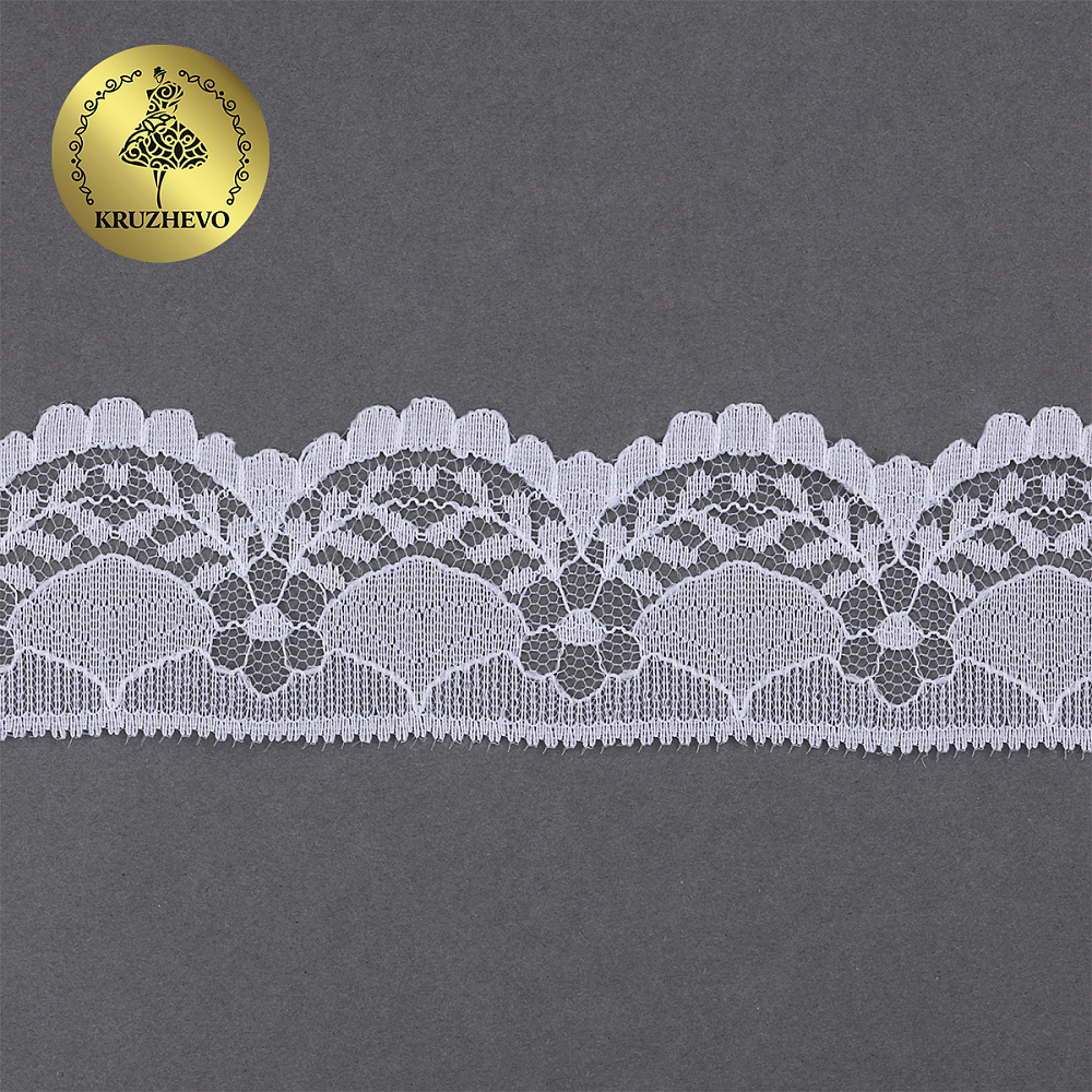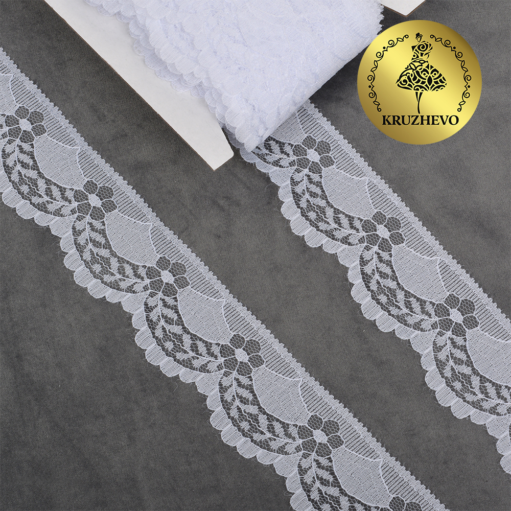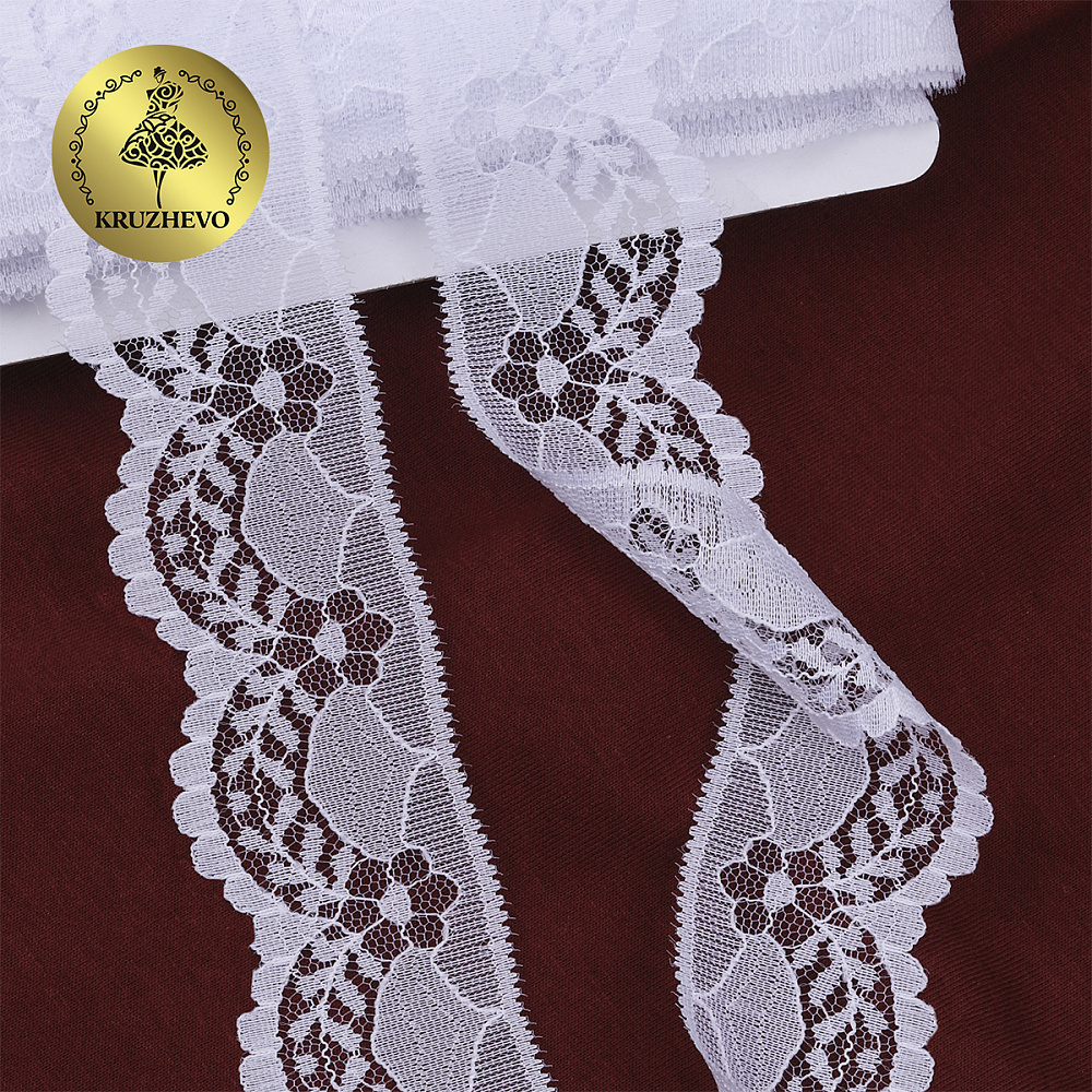 Кружево отделочное в стиле "трикотаж" 40 мм, диз. 278, цв.01 белый, уп. 27,4 м