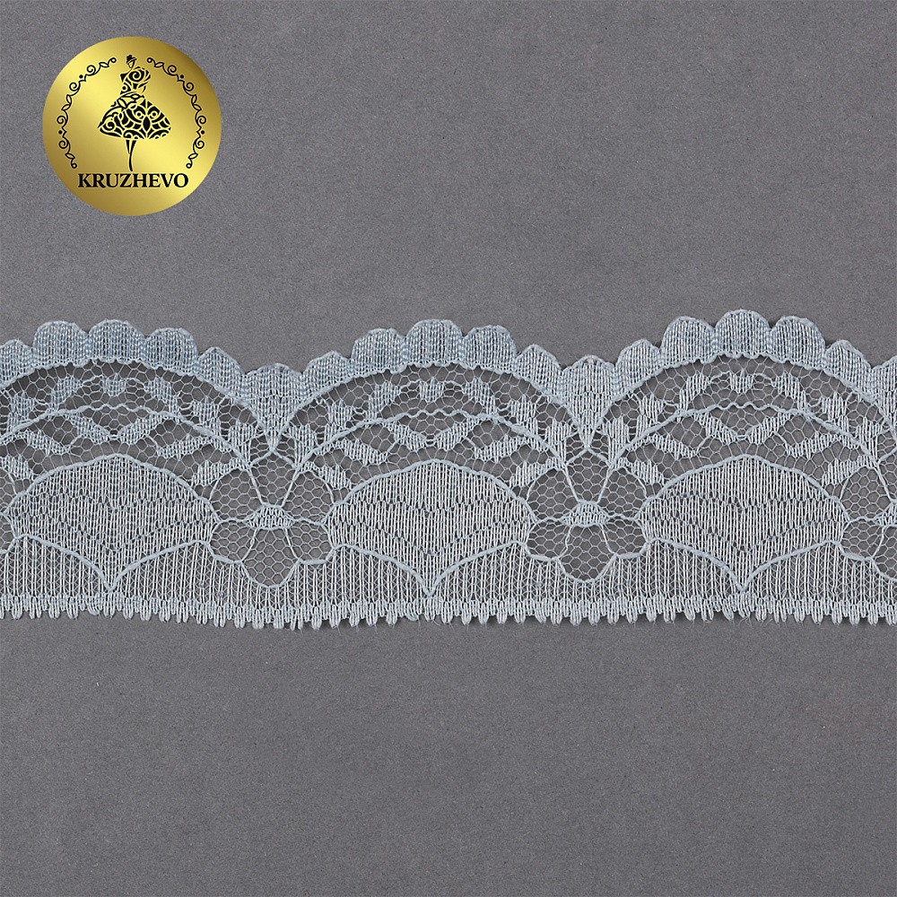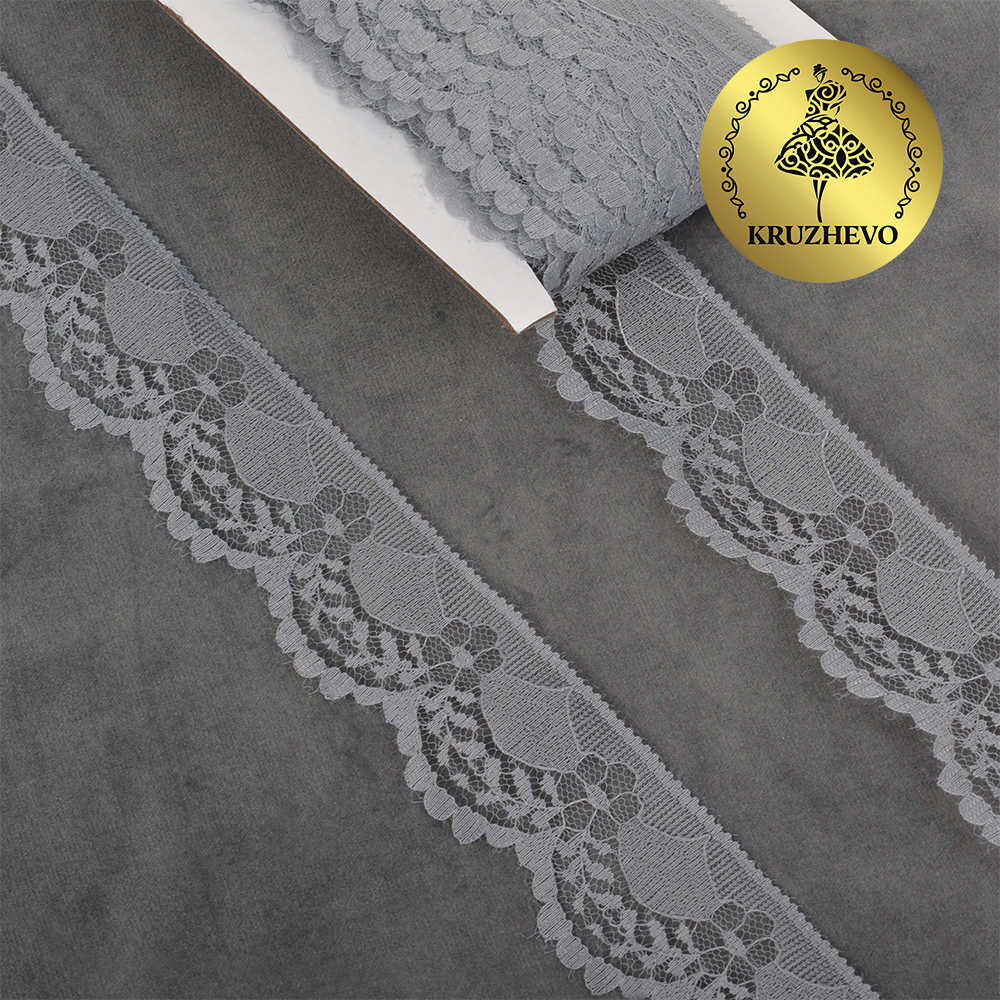 Кружево отделочное в стиле "трикотаж" 40 мм, диз. 278, цв.06 серый, уп. 27,4 м
