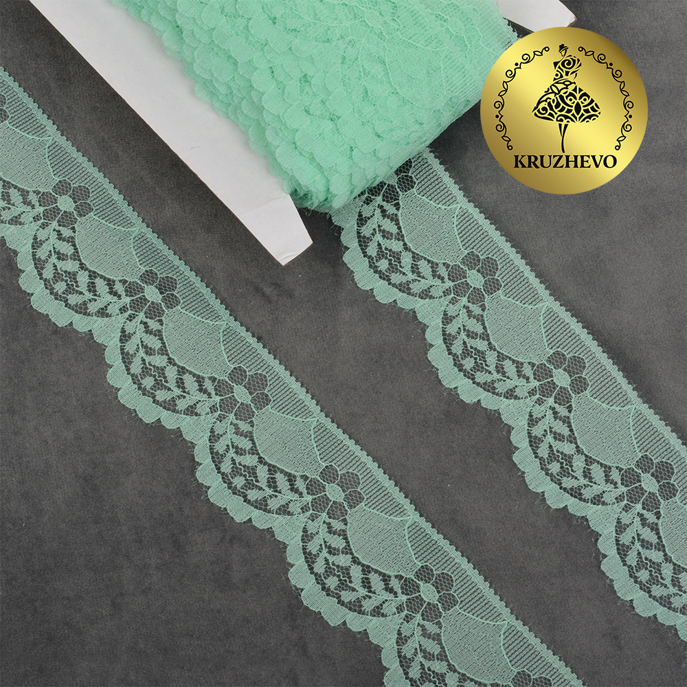 Кружево отделочное в стиле "трикотаж" 40 мм, диз. 278, цв.08 мята, уп. 27,4 м