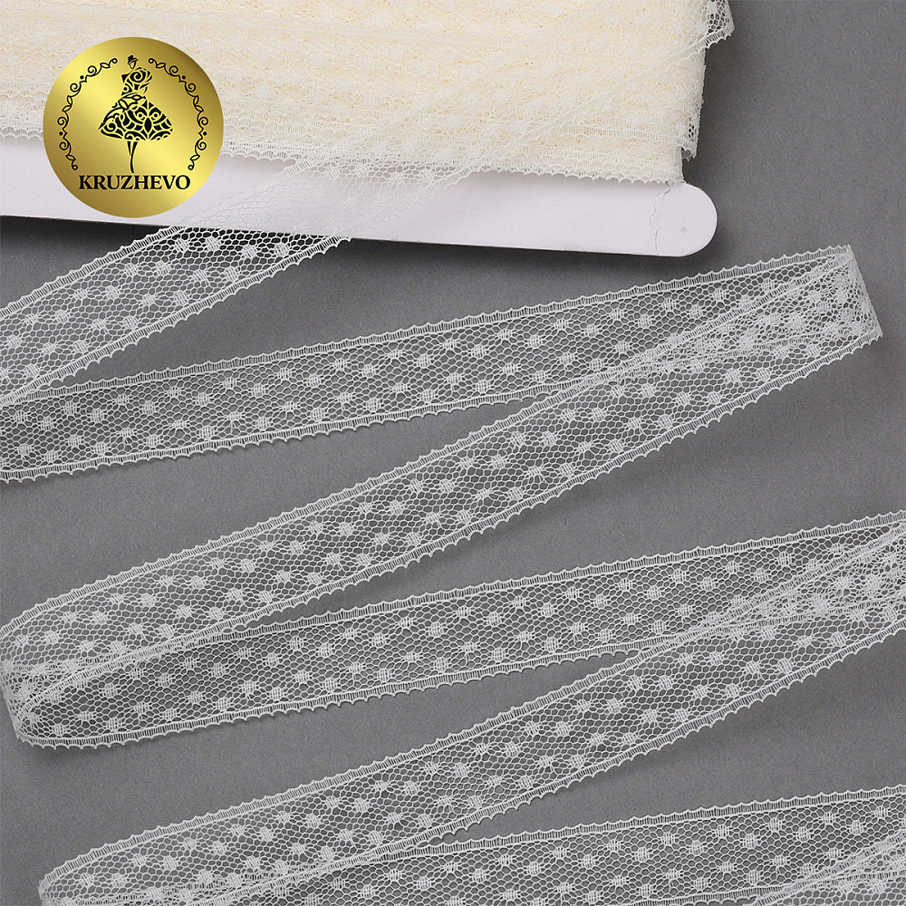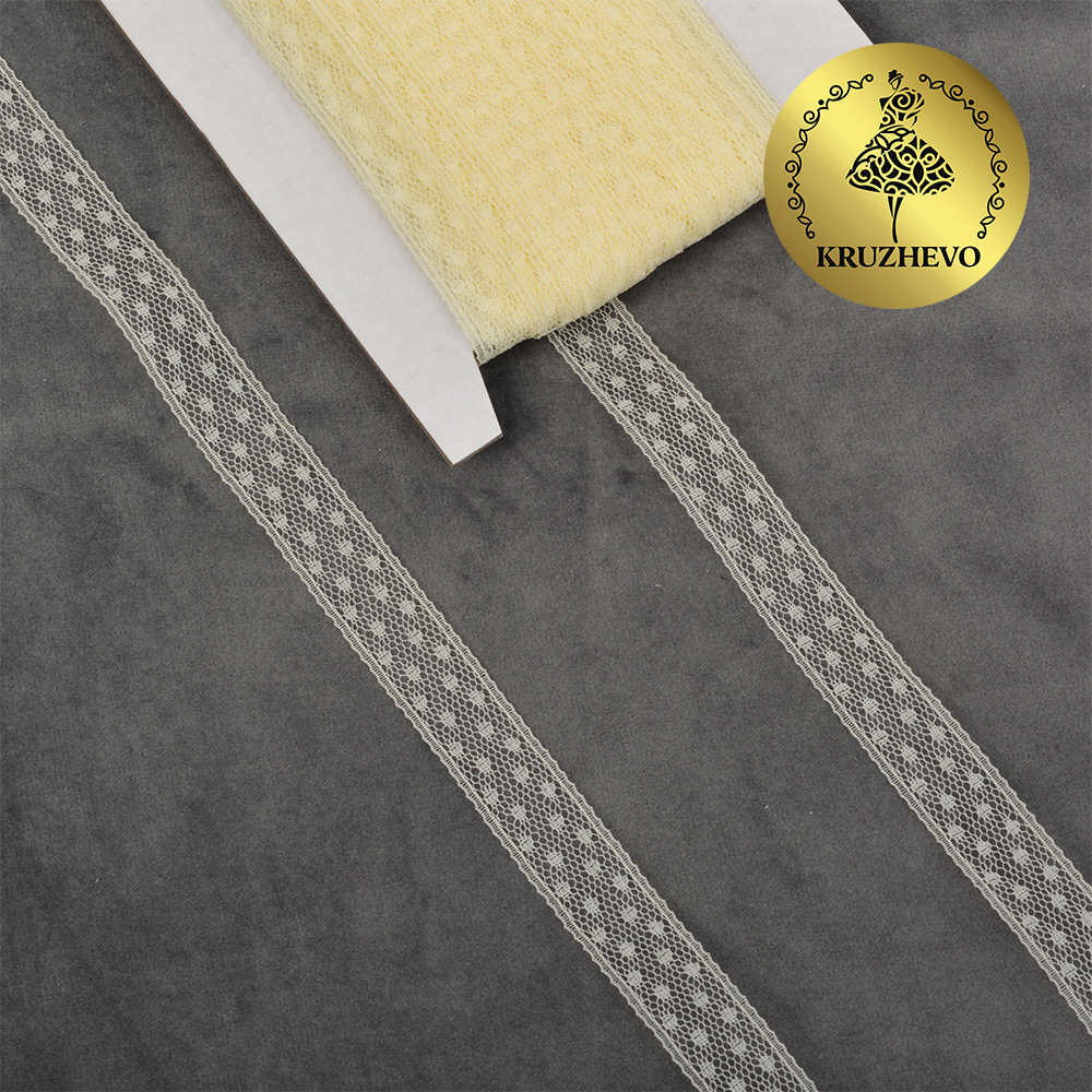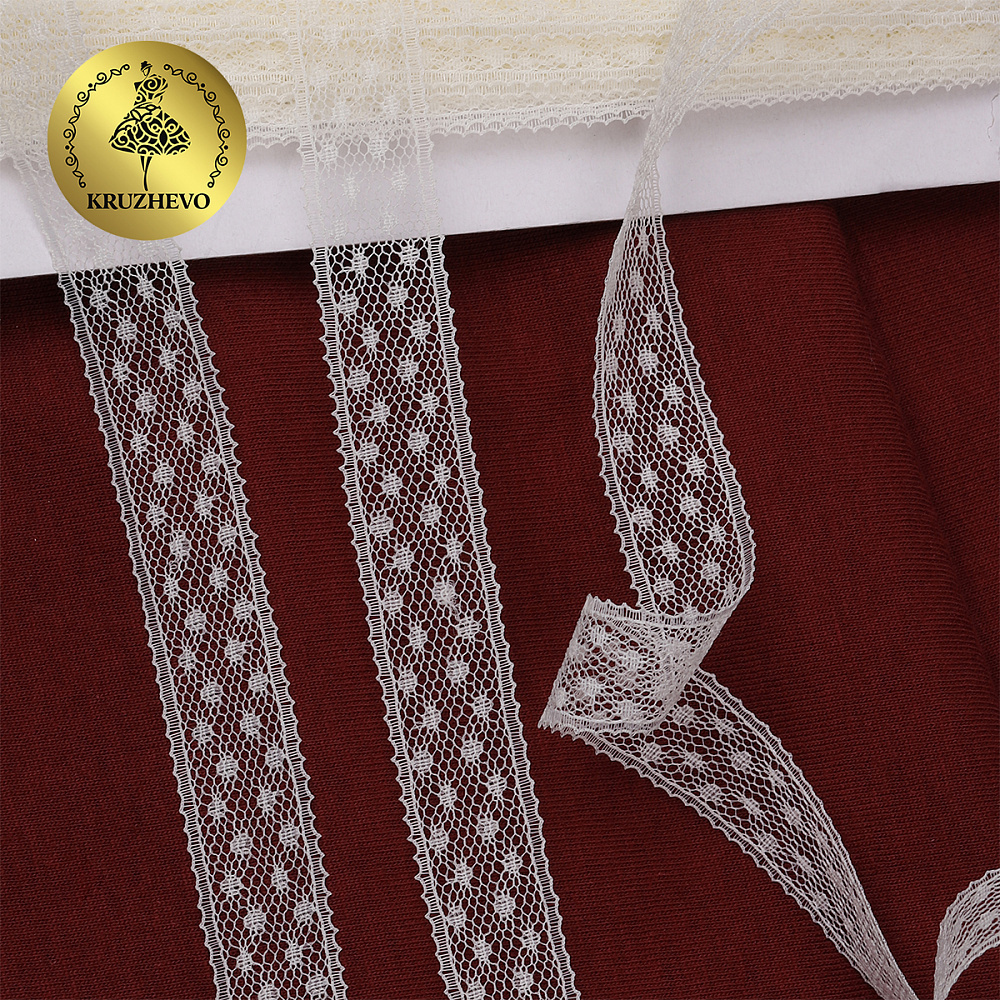 Кружево отделочное в стиле "трикотаж" 15 мм диз. 279, цв.02 молочный, уп. 27,4 м