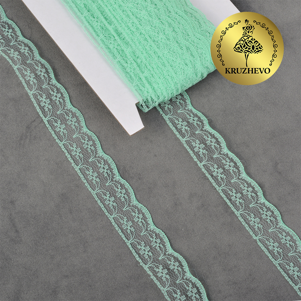 Кружево отделочное в стиле "трикотаж" 20 мм, диз. 280, цв.08 мята, уп. 27,4 м