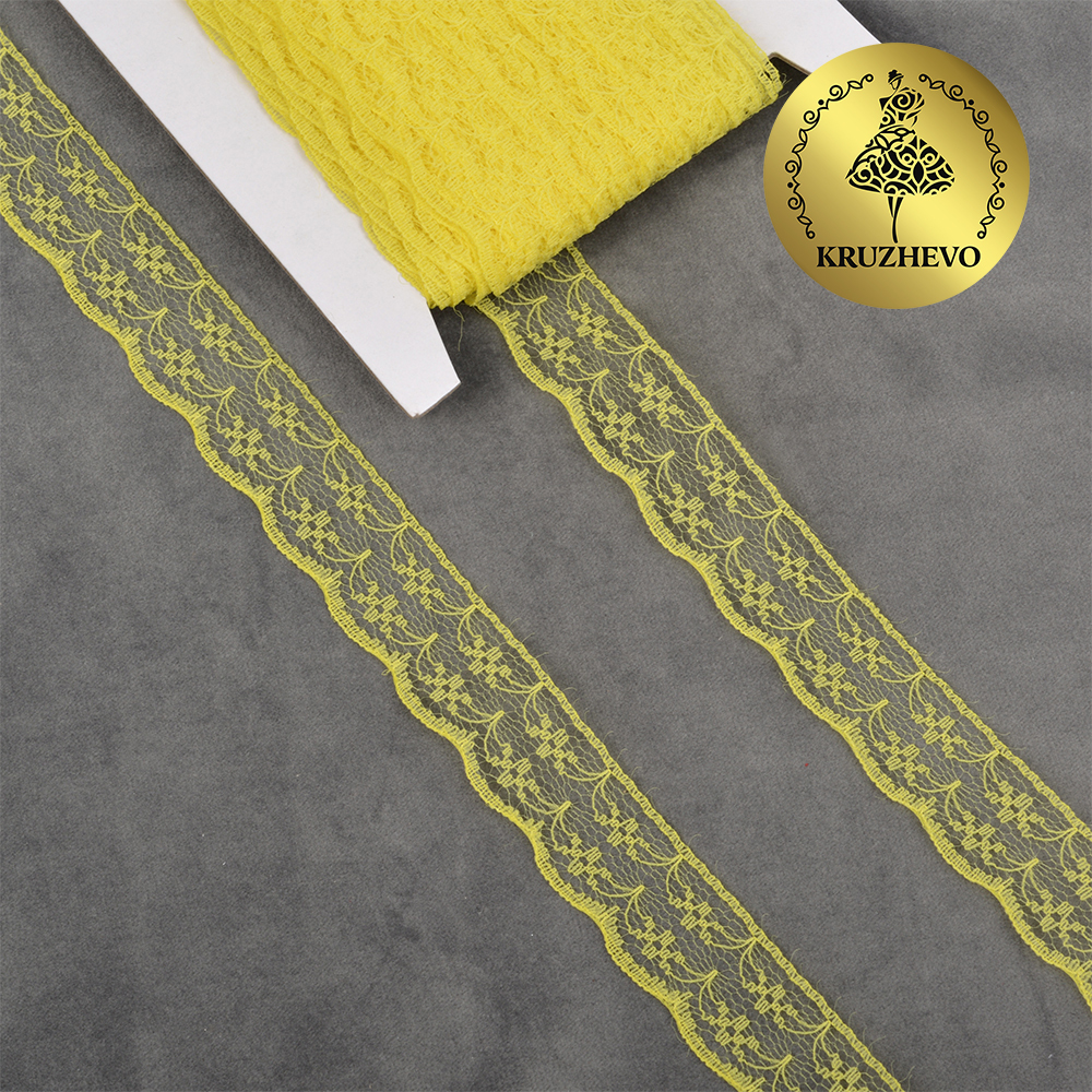 Кружево отделочное в стиле "трикотаж" 20 мм, диз. 280, цв.13 желтый, уп. 27,4 м