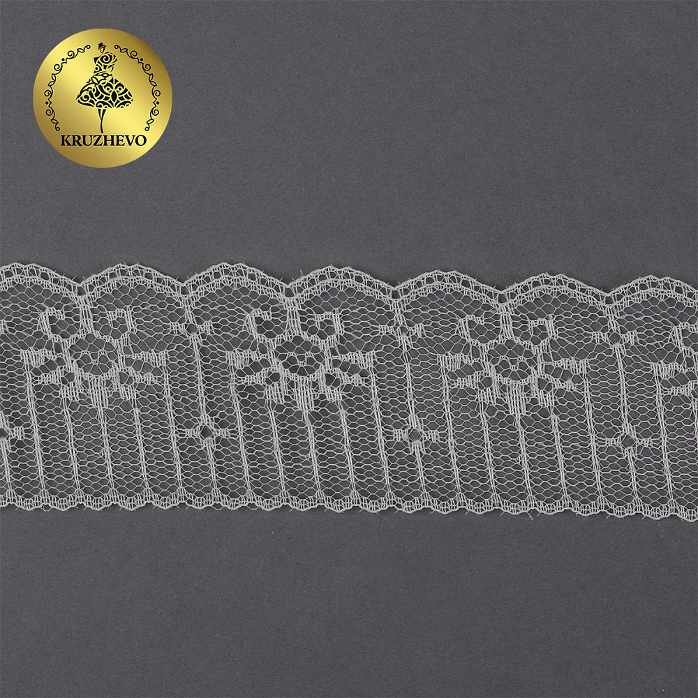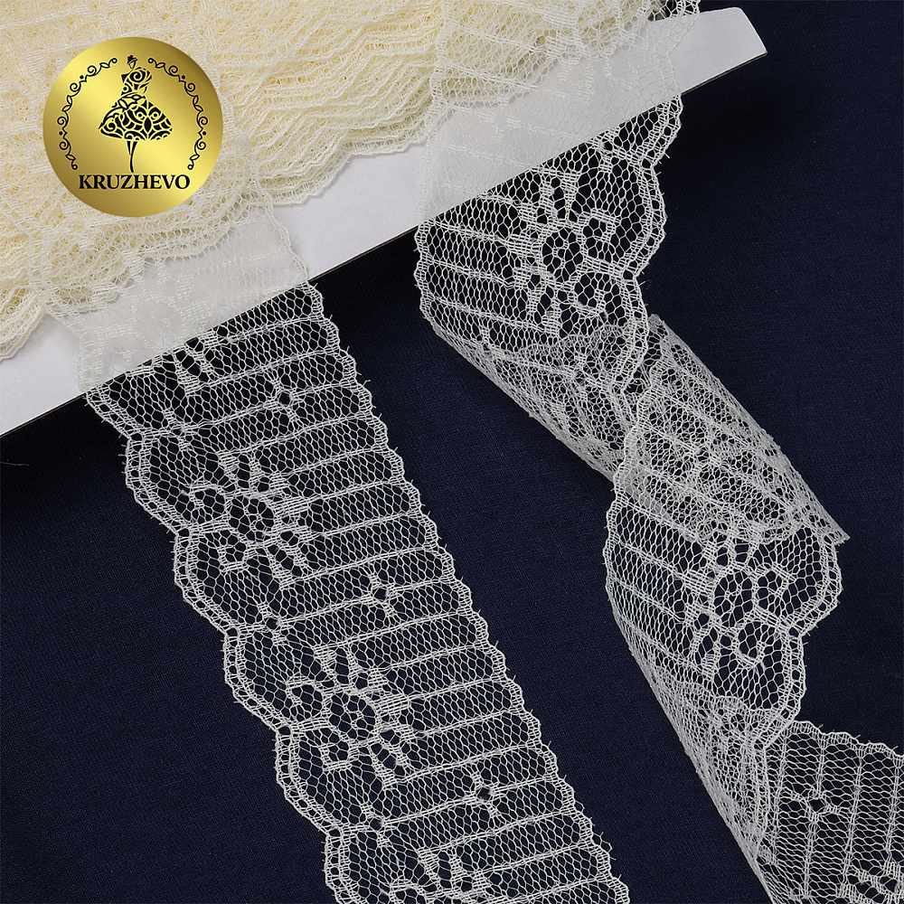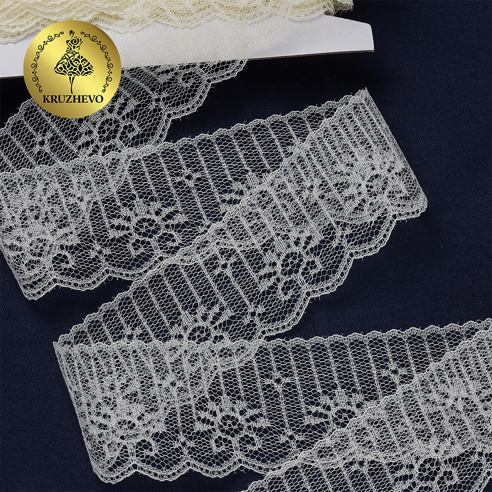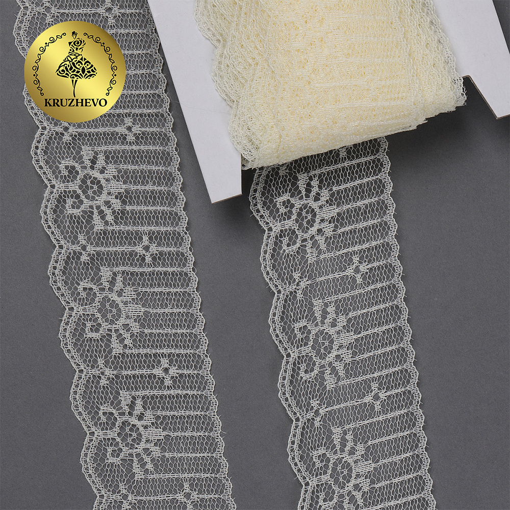 Кружево отделочное в стиле "трикотаж" 50 мм, диз. 283, цв.02 молочный, уп. 27,4 м