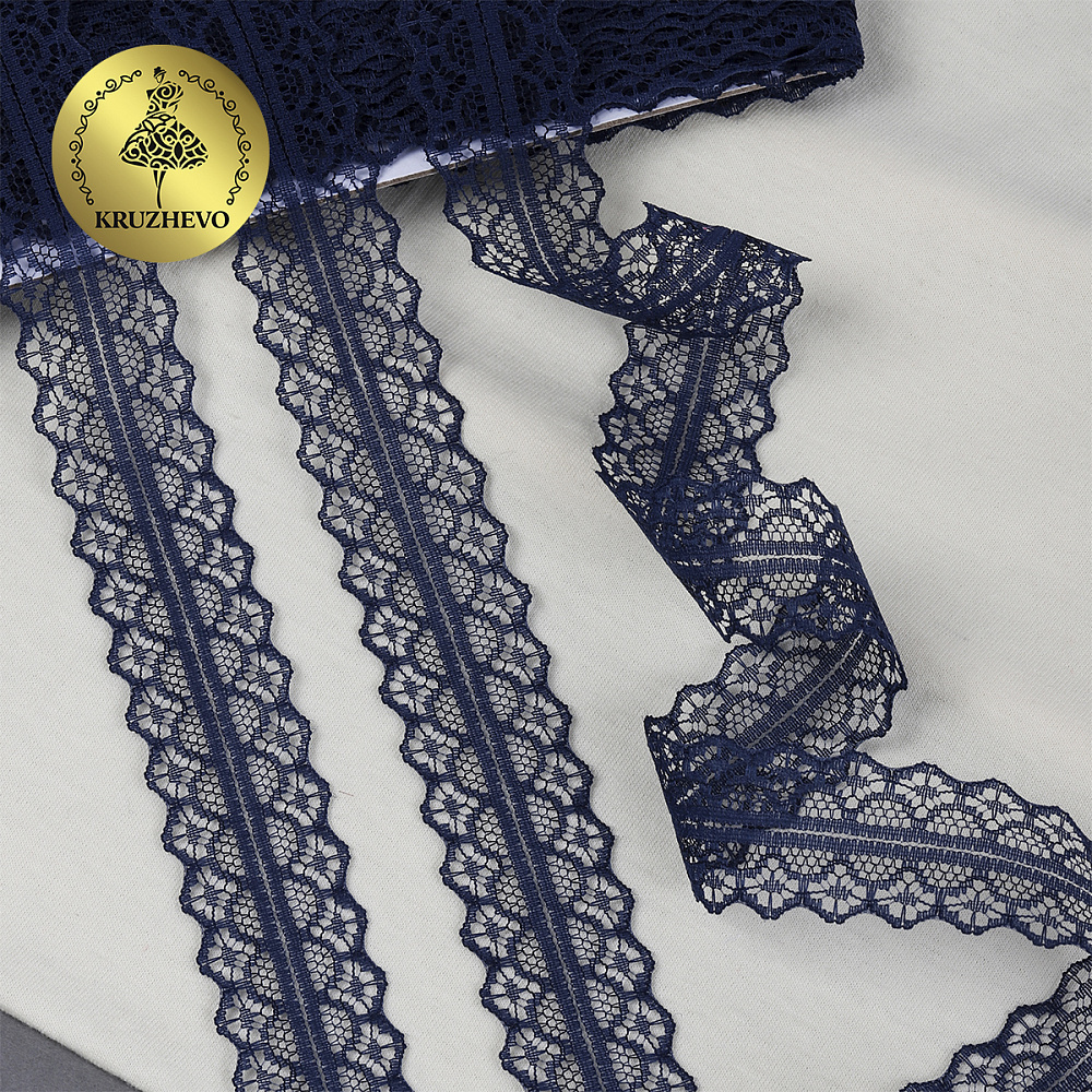 Очень красивое и нежное кружево-трикотаж. Большая палитра оттенков, различная ширина и разнообразные рисунки. Кружево-трикотаж можно использовать для разных сфер дизайна — отделки нижнего белья, халатов, маек, повседневной и праздничной одежды, изготовлении аксессуаров. Кружево не эластичное!