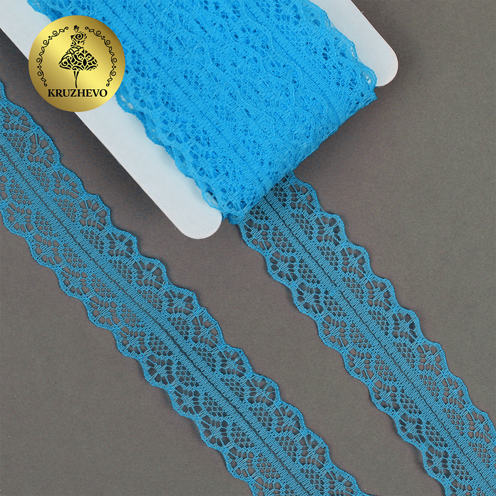Кружево отделочное в стиле "трикотаж" Kruzhevo 30 мм, TBY 1659-1, бирюзовый, 27.4м