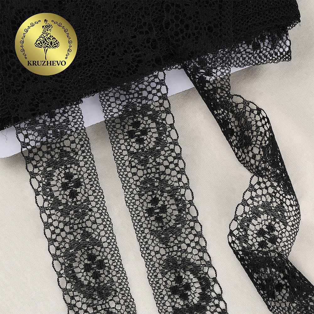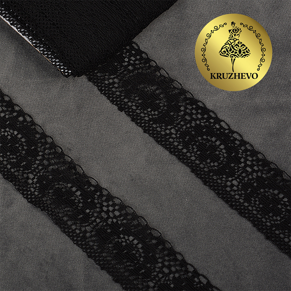 Кружево отделочное в стиле "трикотаж" 40 мм, TBY 1660, цв.10 черный, уп.27.4м
