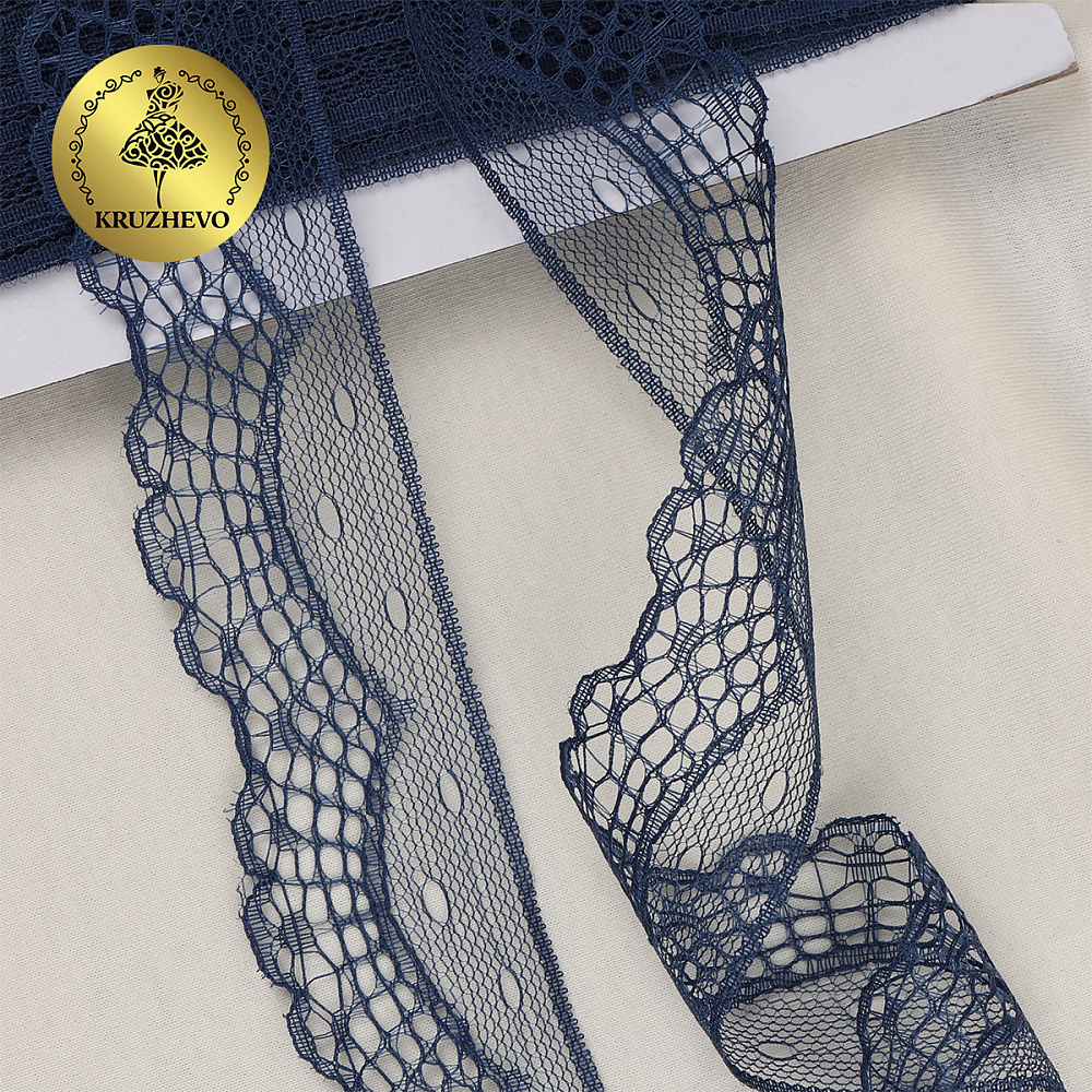 Очень красивое и нежное кружево-трикотаж. Большая палитра оттенков, различная ширина и разнообразные рисунки. Кружево-трикотаж можно использовать для разных сфер дизайна — отделки нижнего белья, халатов, маек, повседневной и праздничной одежды, изготовлении аксессуаров. Кружево не эластичное!