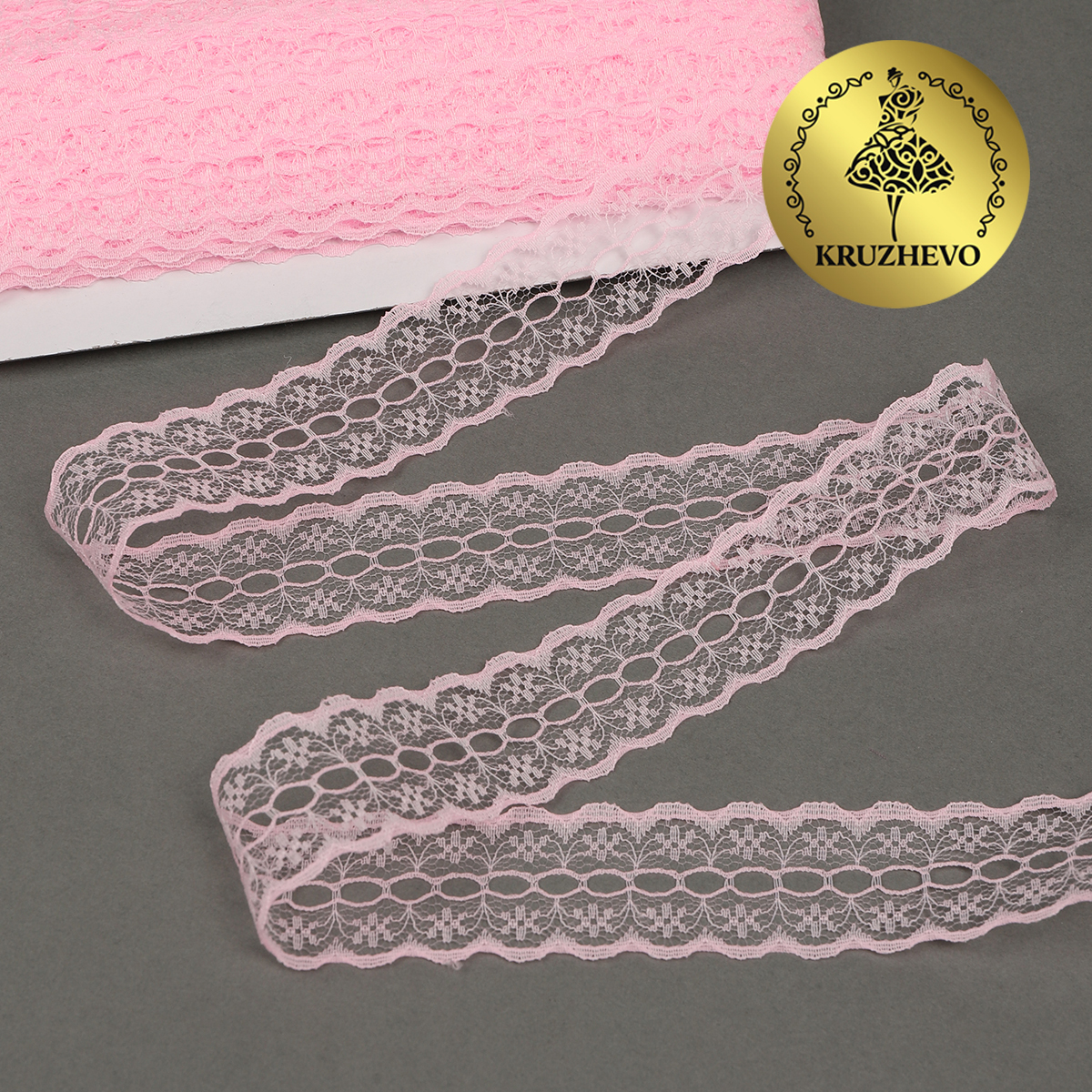 Кружево отделочное в стиле "трикотаж" 28 мм, TBY 1670, цв.09 св.розовый, уп.27.4м