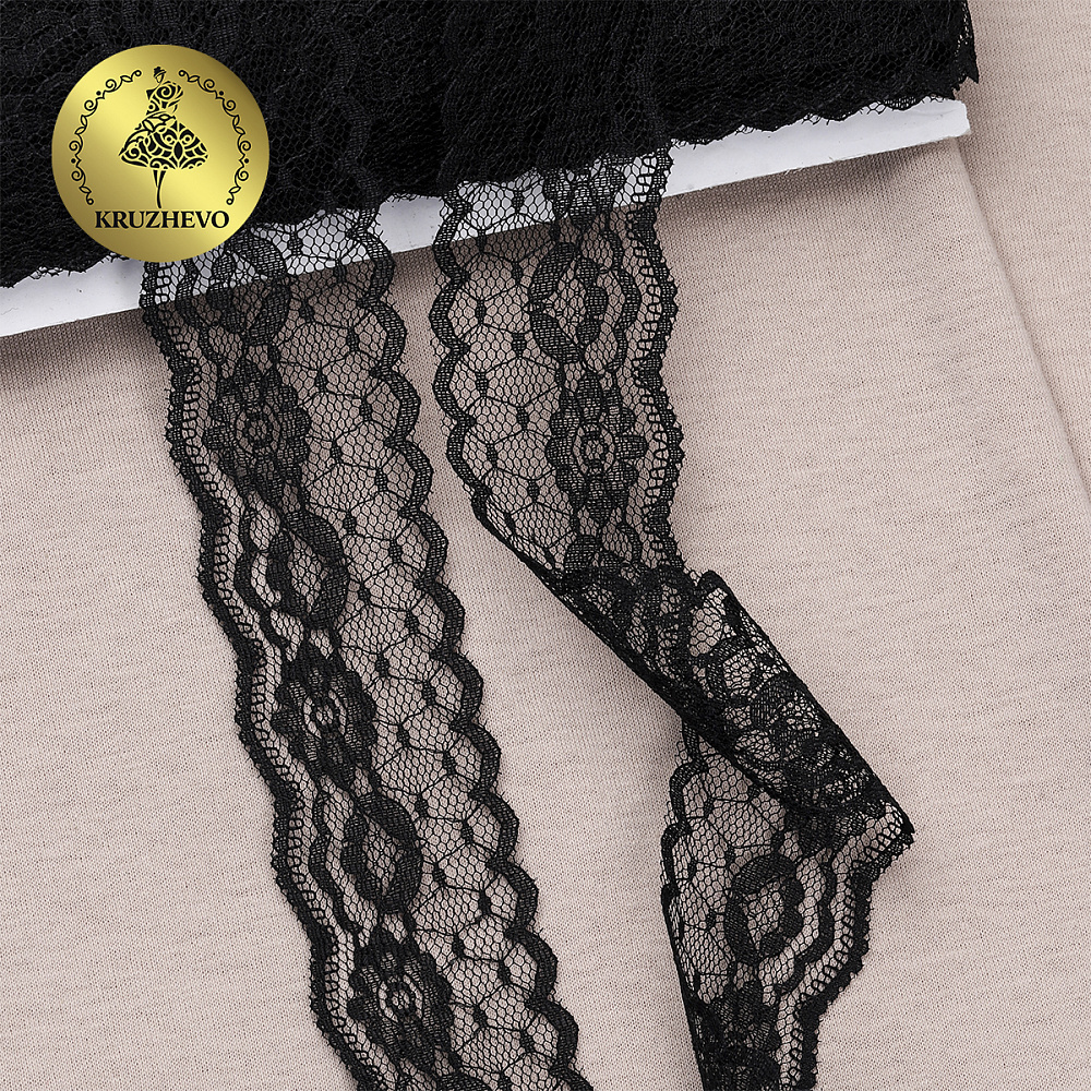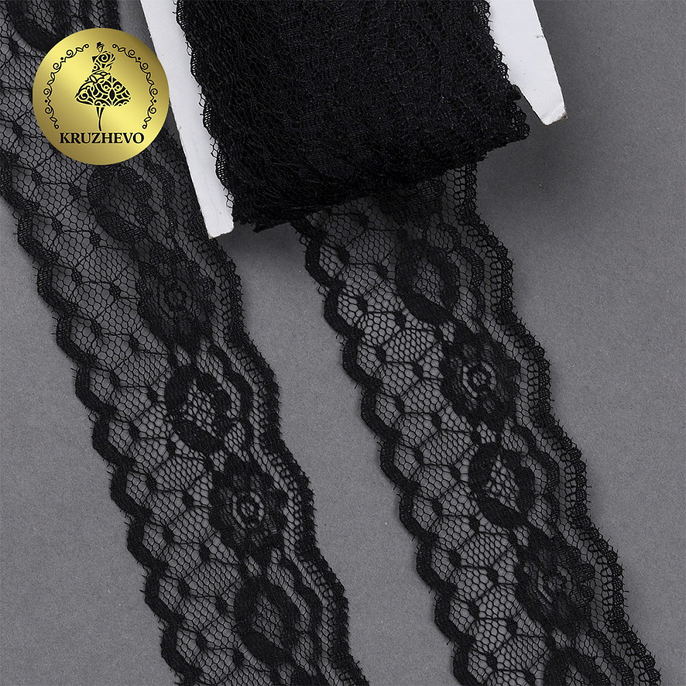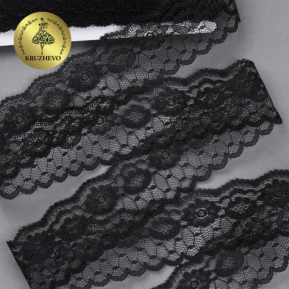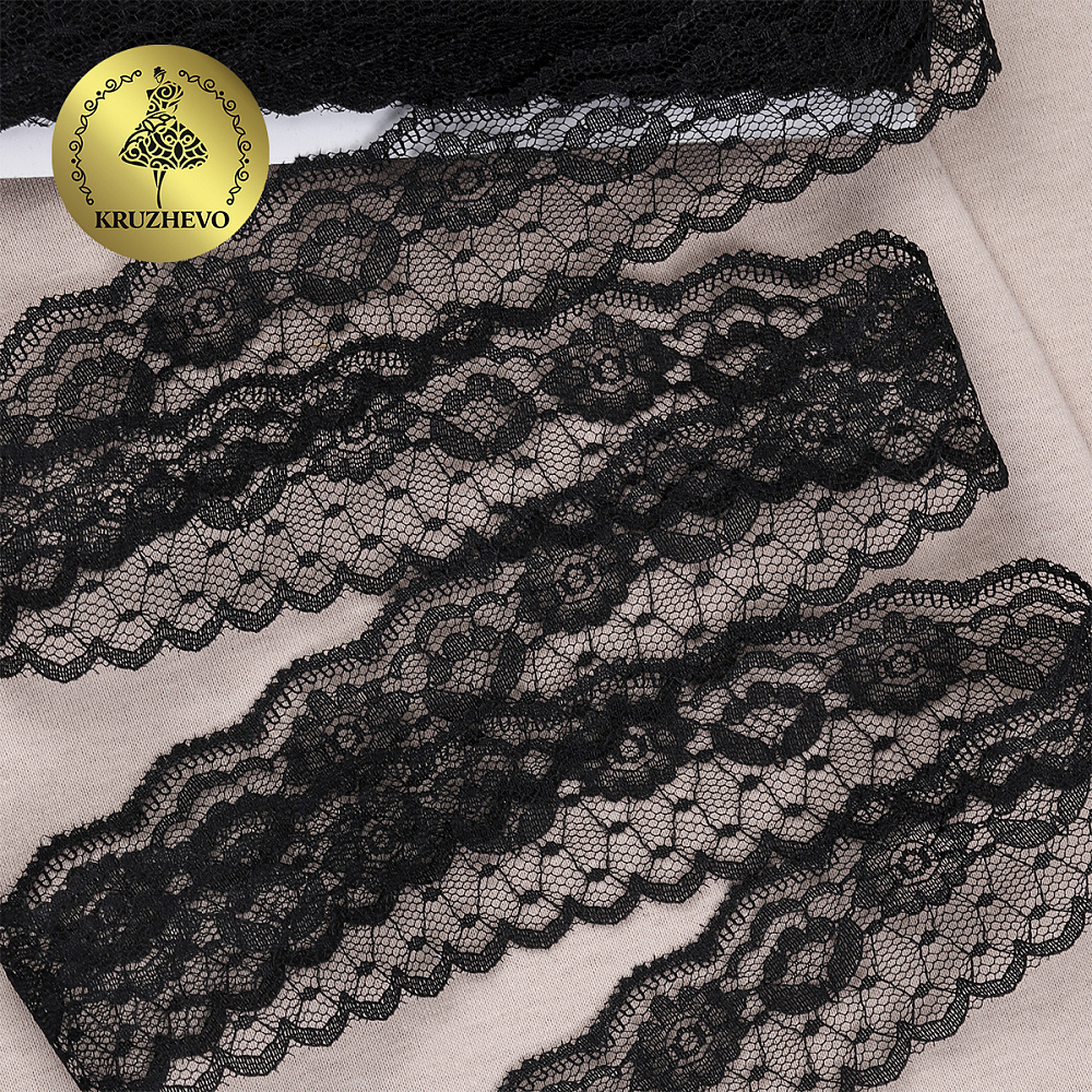 Очень красивое и нежное кружево-трикотаж. Большая палитра оттенков, различная ширина и разнообразные рисунки. Кружево-трикотаж можно использовать для разных сфер дизайна — отделки нижнего белья, халатов, маек, повседневной и праздничной одежды, изготовлении аксессуаров. Кружево не эластичное!