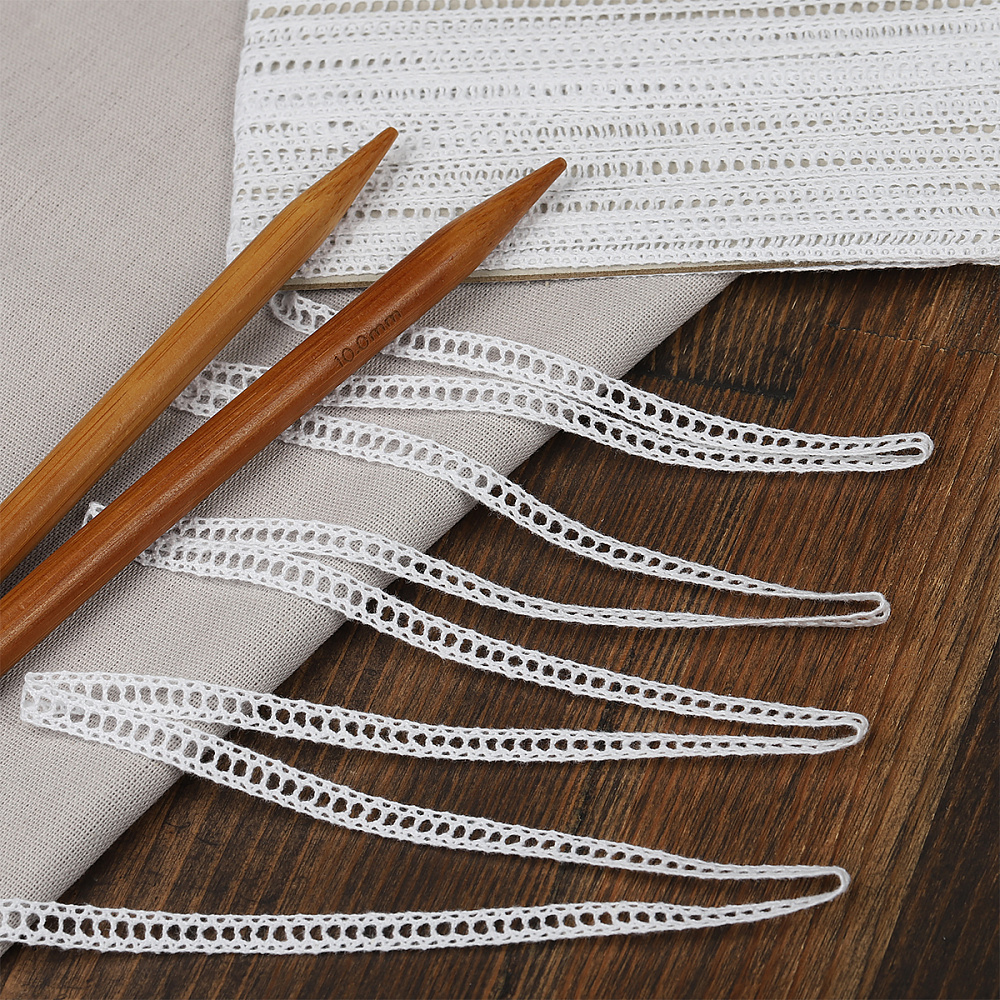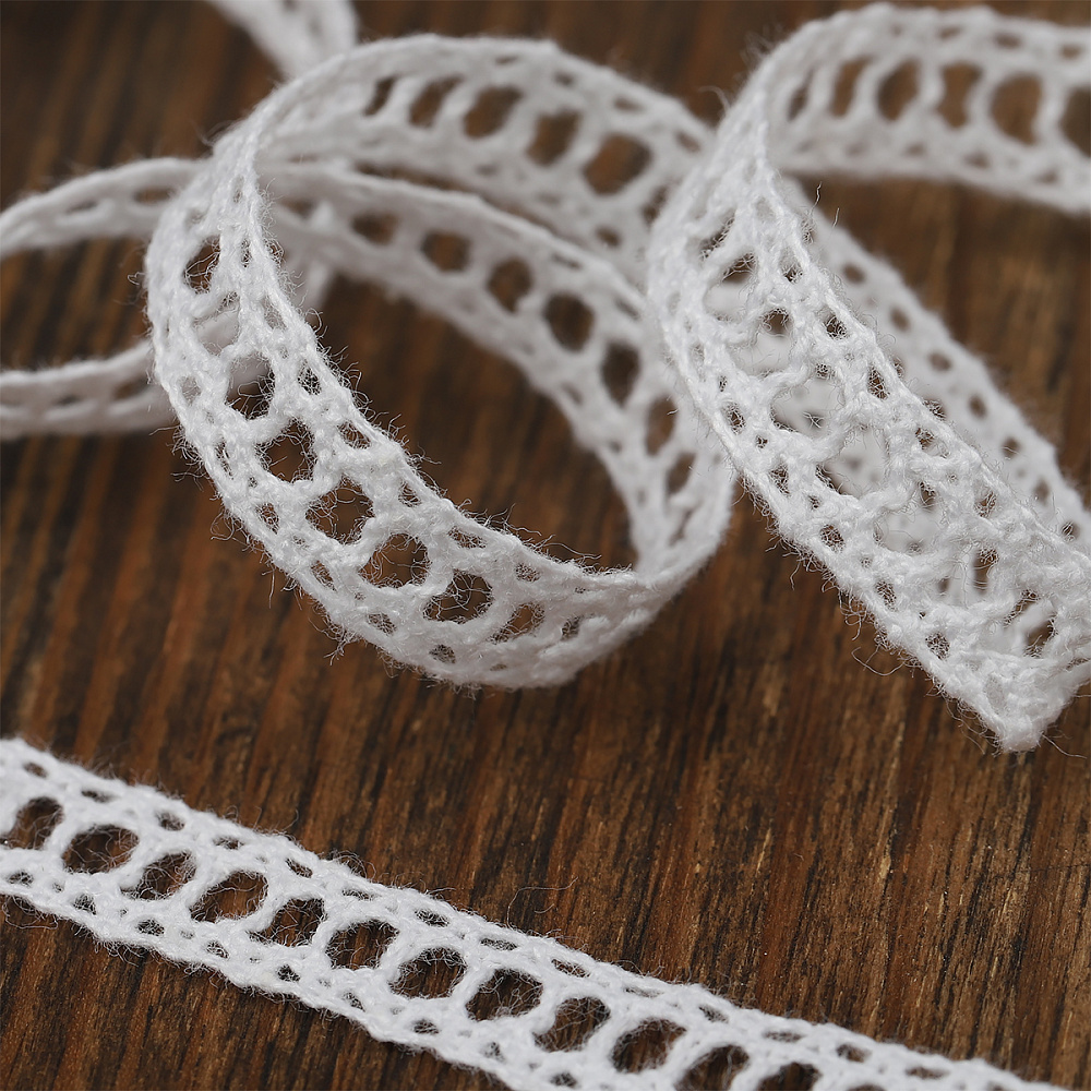 Вязаное кружево из хлопковых нитей с разнообразными рисунками. Богатая цветовая гамма и различная ширина кружева. Широкая сфера использования – от обычного пошива одежды до создания аксессуаров.