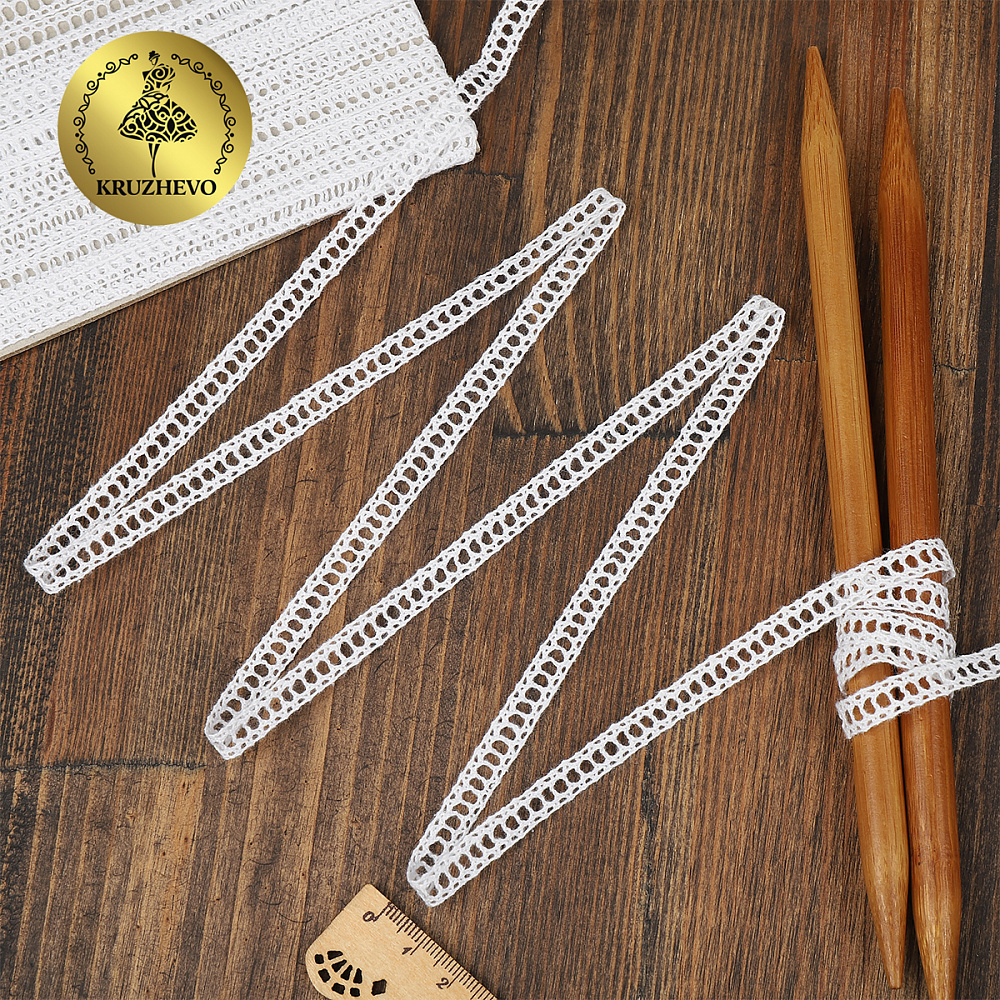 Кружево вязаное (тесьма) 10 мм, диз.6352.02, цв.белый, уп.9.14м, Kruzhevo