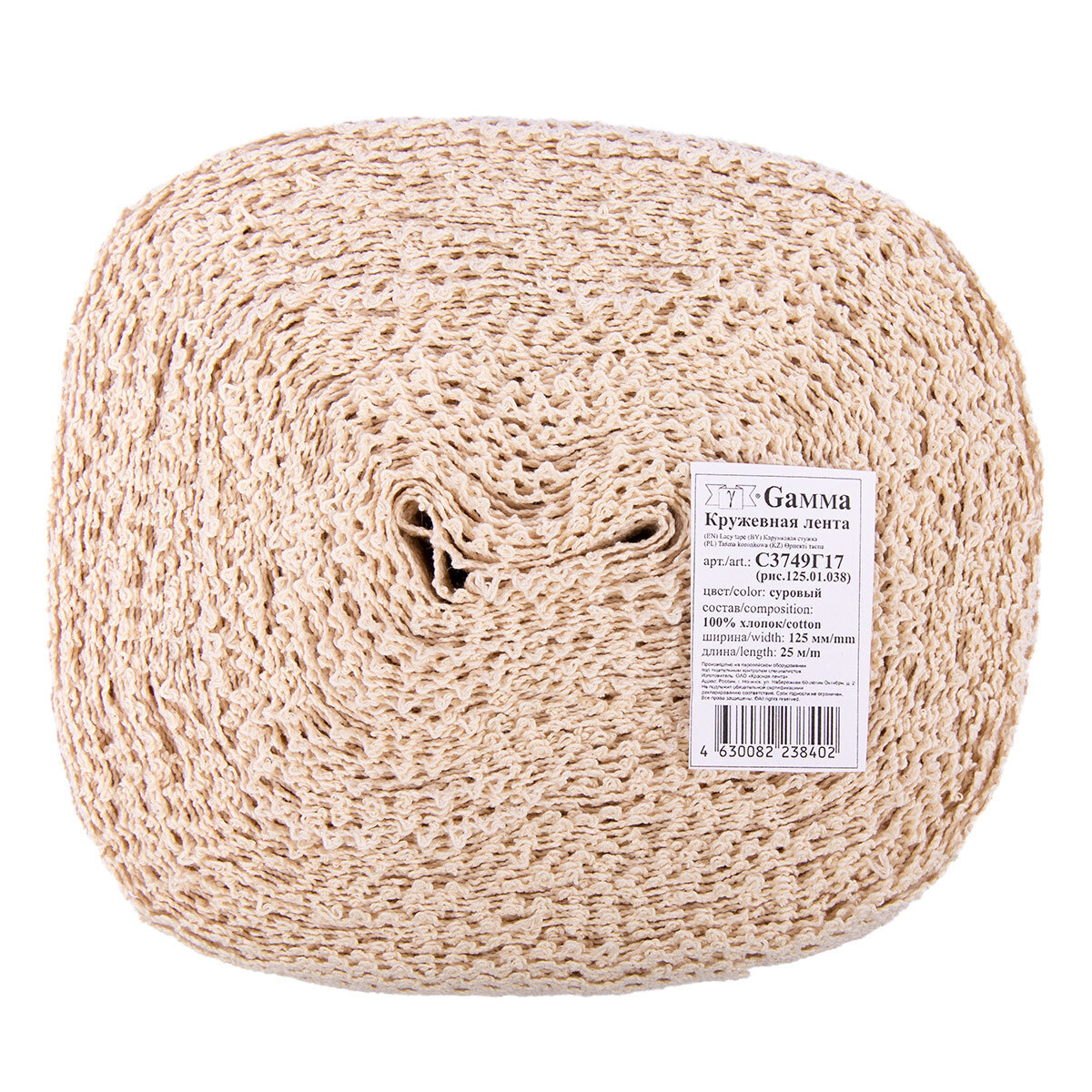 Кружево вязаное (тесьма) широкое 120-125 мм / 25 м, суровый, Gamma С3749Г17(рис.125.01.038)