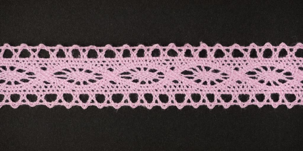Кружево вязаное (тесьма) 21 мм, цв.св.-розовый, 25м, Alfa, AF-146-020