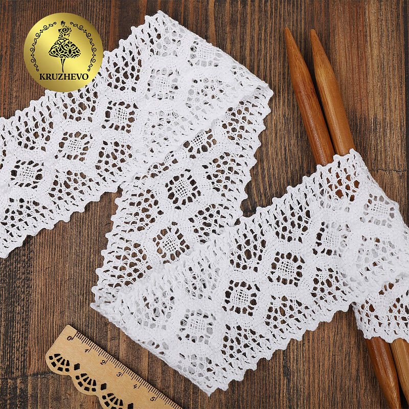Кружево вязаное (тесьма) 75 мм / 10 метров, белый