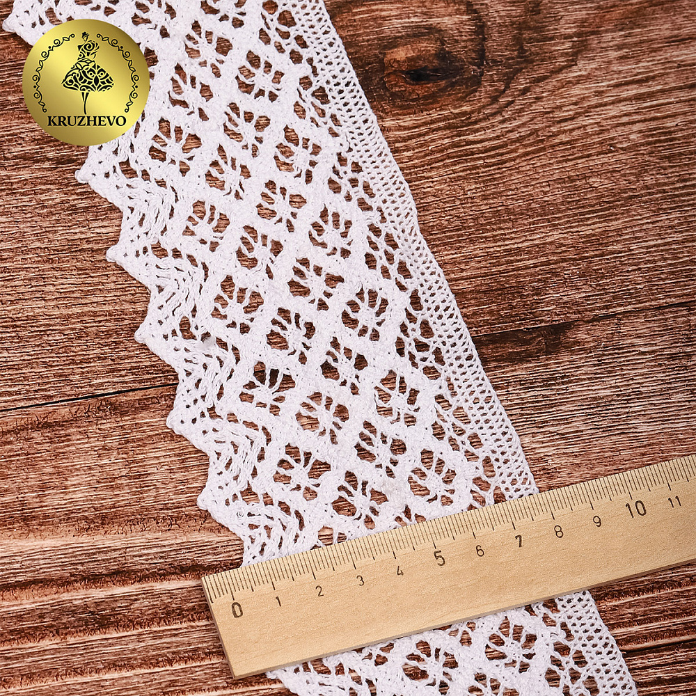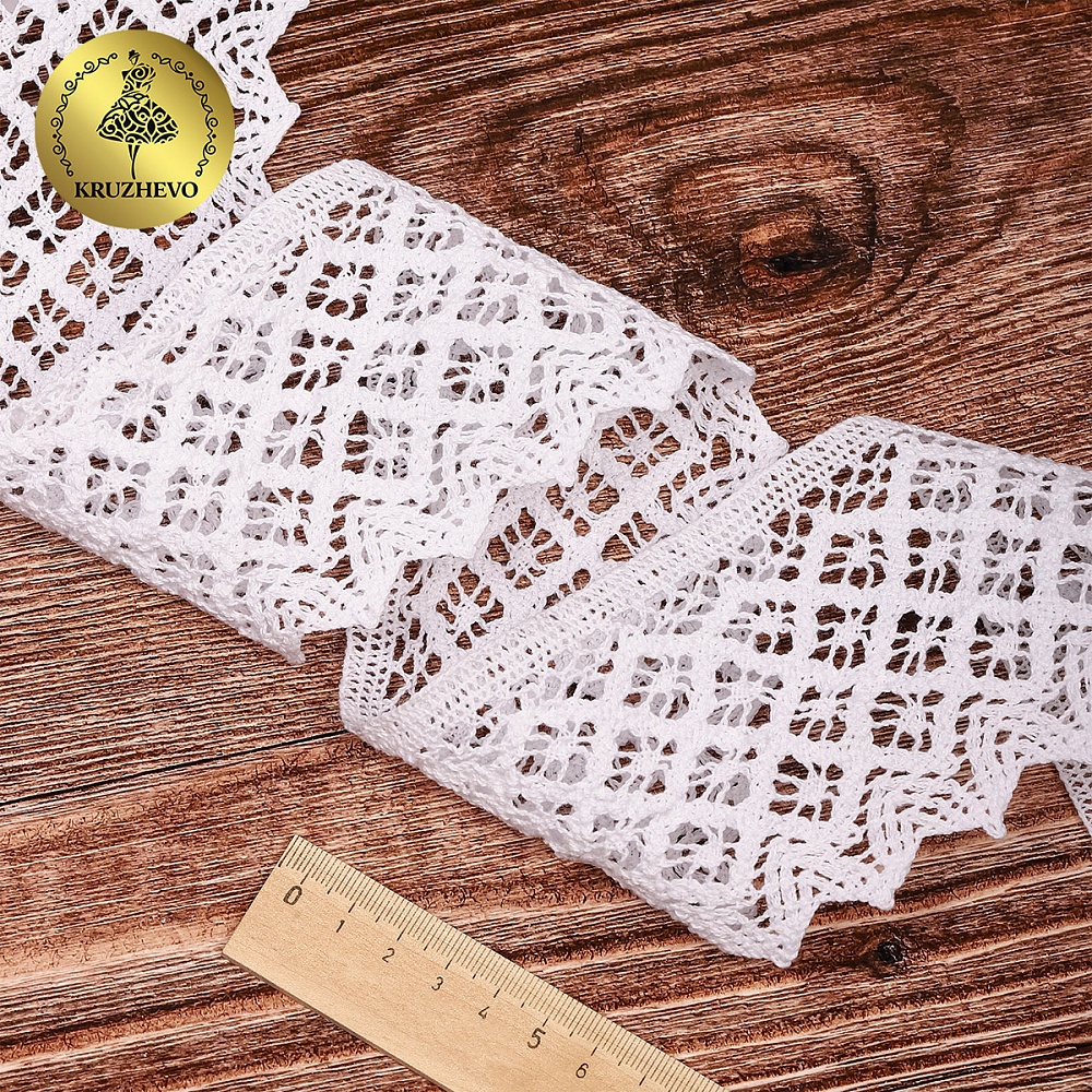 Красивое вязаное кружево из хлопковых нитей очень качественное, мягкое, приятное на ощупь. Украсит любое изделие, сделав его изысканным, утончённым. Широкая сфера использования – от обычного пошива одежды до создания аксессуаров.