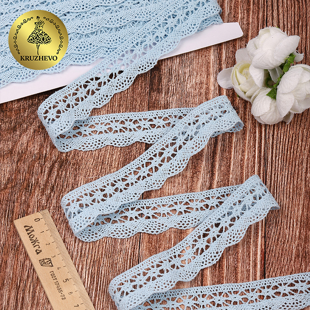 Кружево вязаное (тесьма) 27 мм / 10 метров, хлопок, TBY.1005, F183 голубой