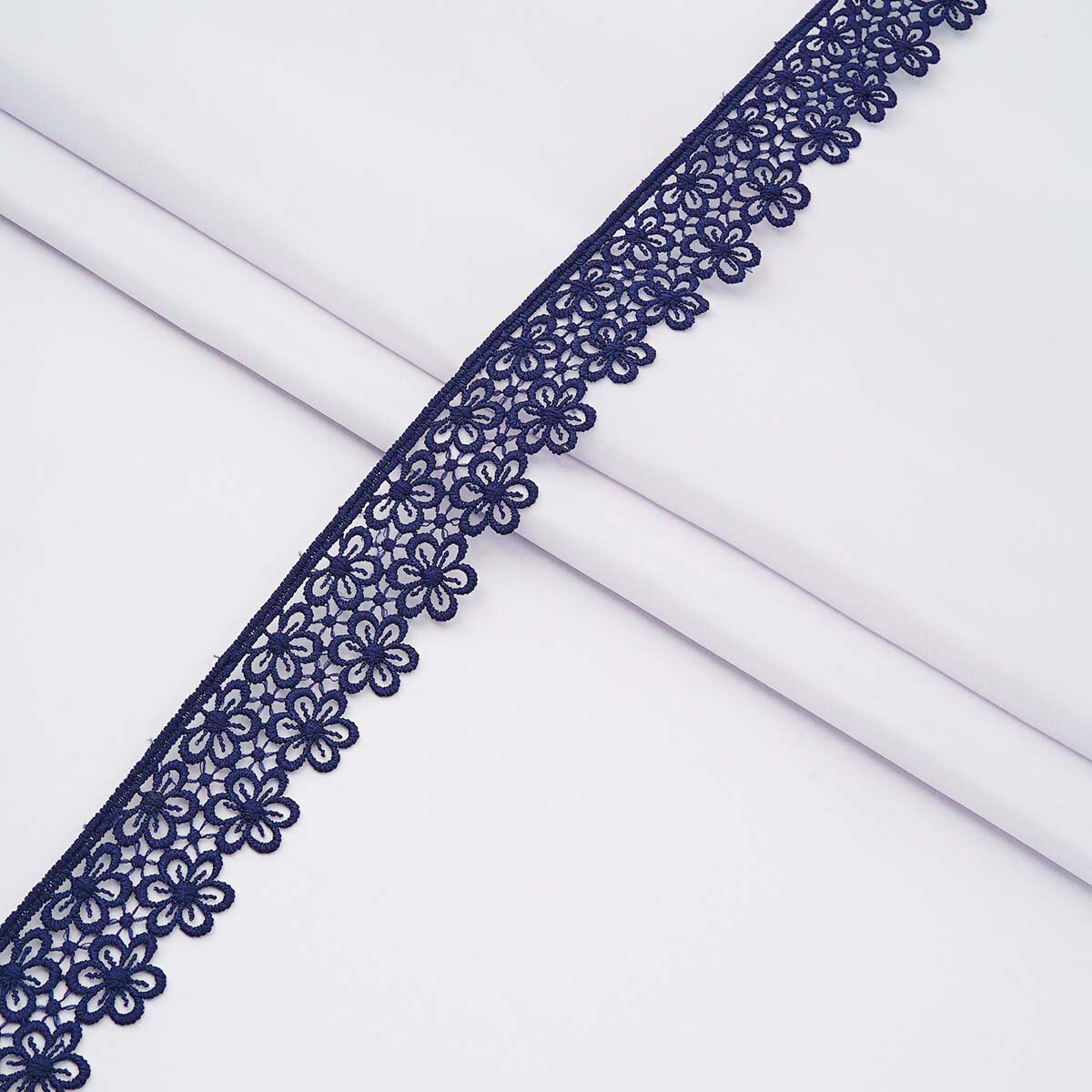 Кружево гипюр (плетёное) 35 мм / 13.72 метра, ромашки, темно-синий, XZ1389