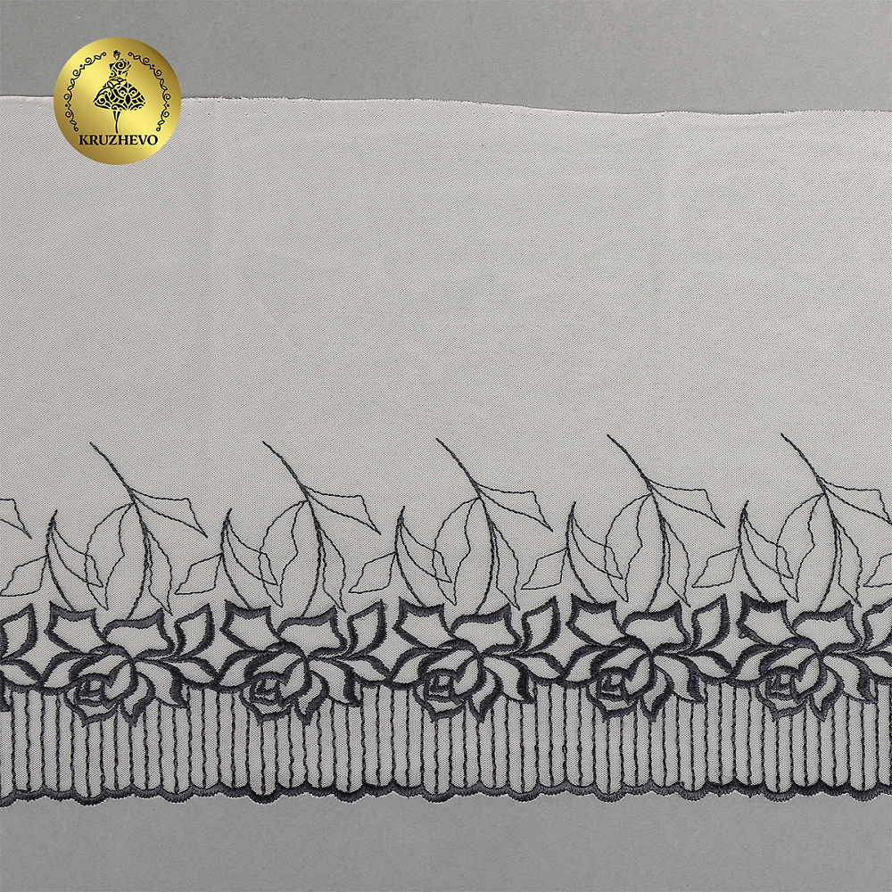 Очень нежное и приятное кружево Вышивка на сетке. Сеточка мягкая, приятная на ощупь, хорошо драпируется. Вышивка выполнена очень аккуратно. Идеально для отделки нижнего белья, одежды, текстиля.