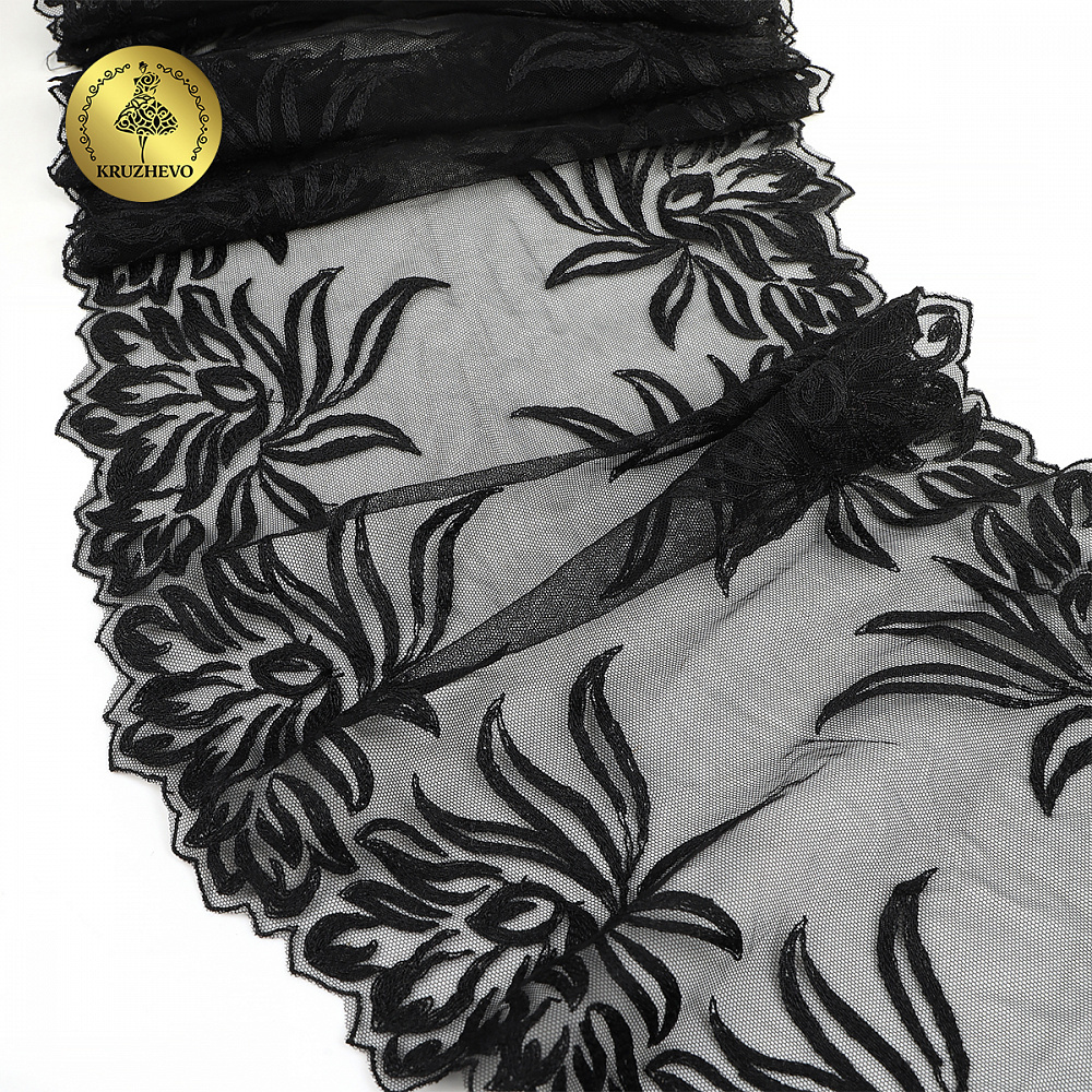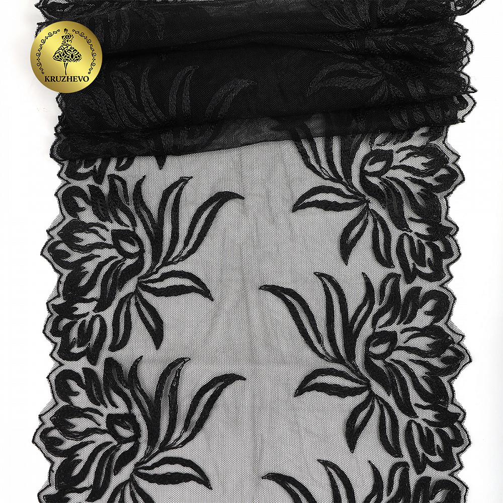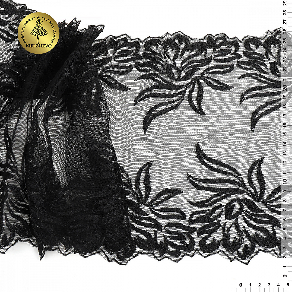 Кружево на сетке (вышитое) арт.T98 245мм цв.черный уп.7м, Kruzhevo