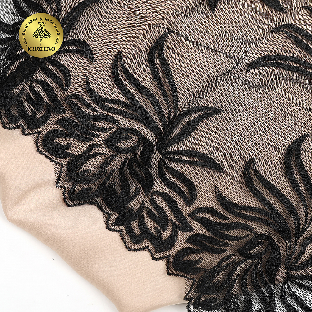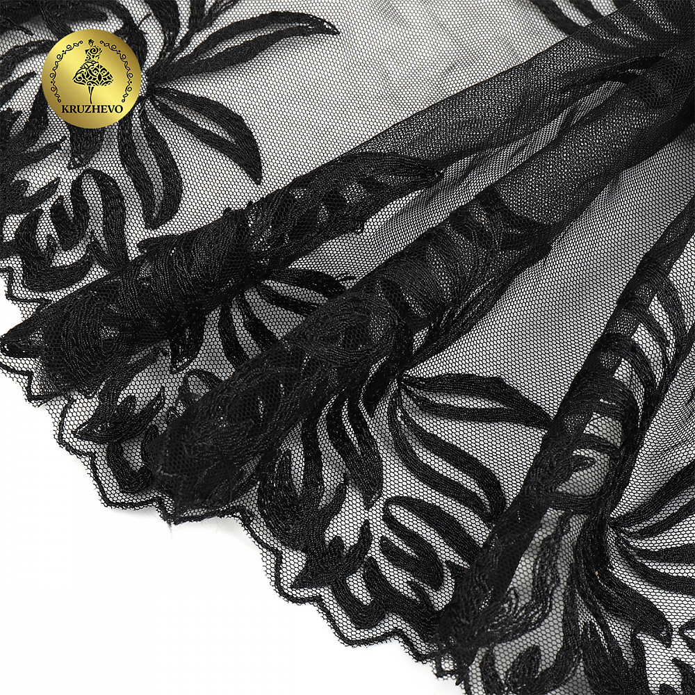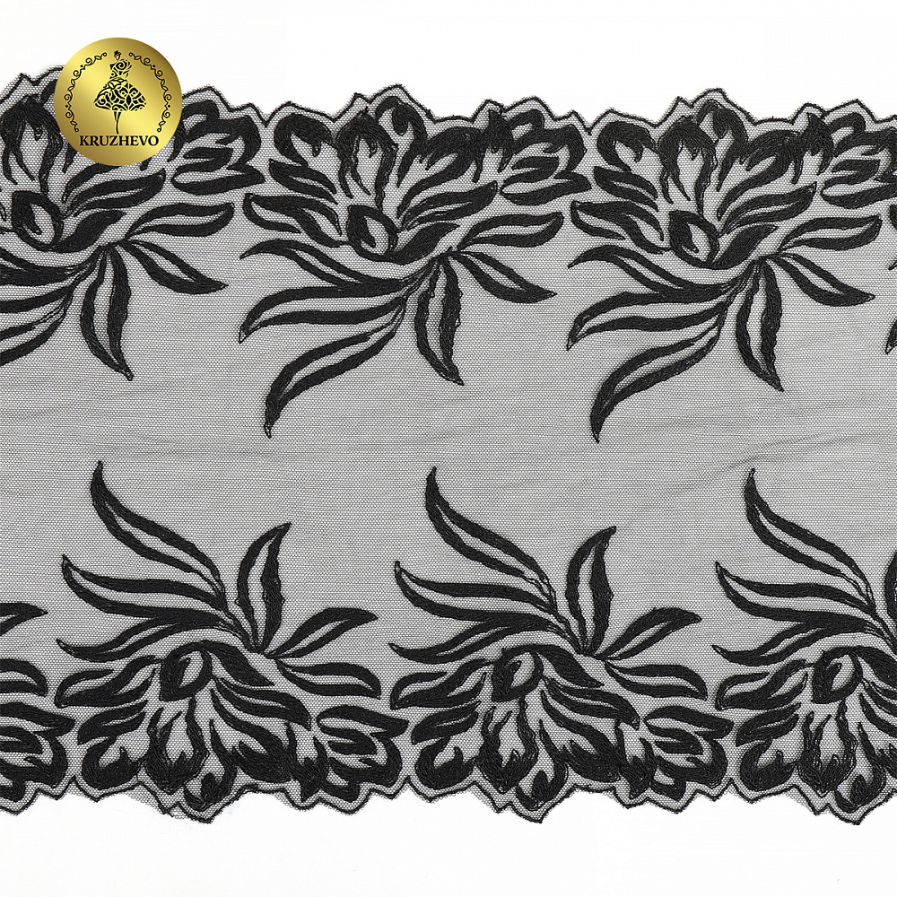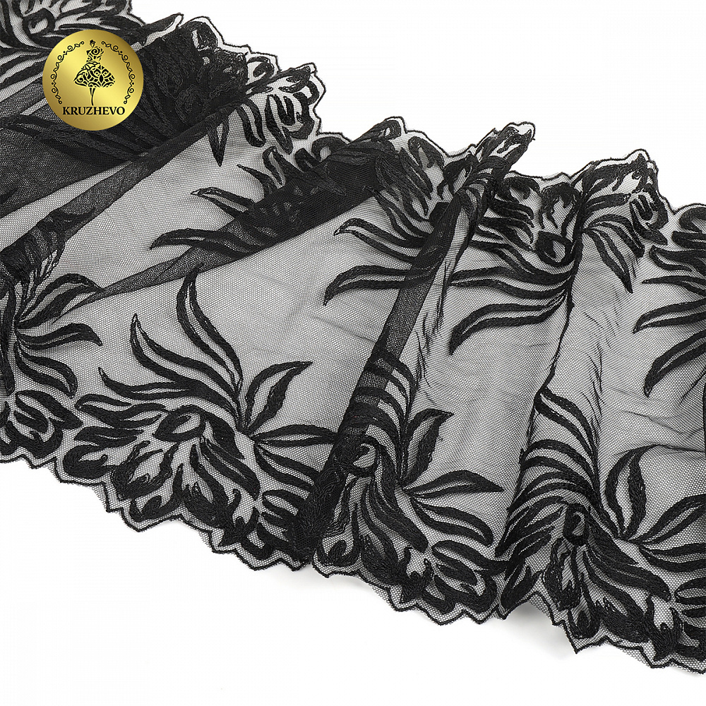 Кружево на сетке (вышитое) арт.T98 245мм цв.черный уп.7м, Kruzhevo