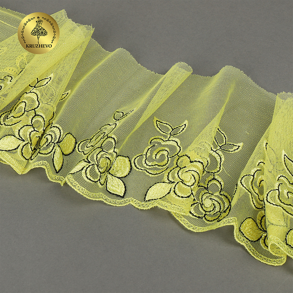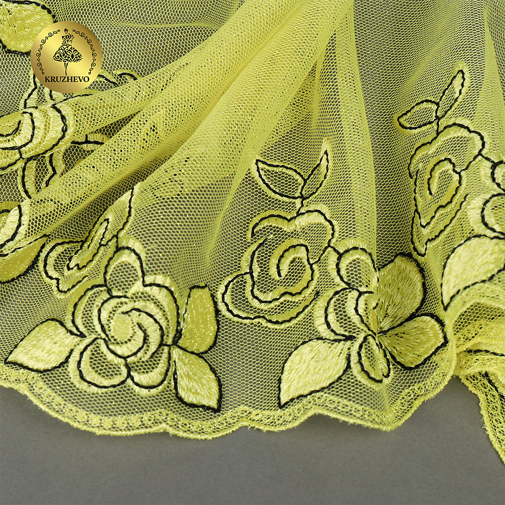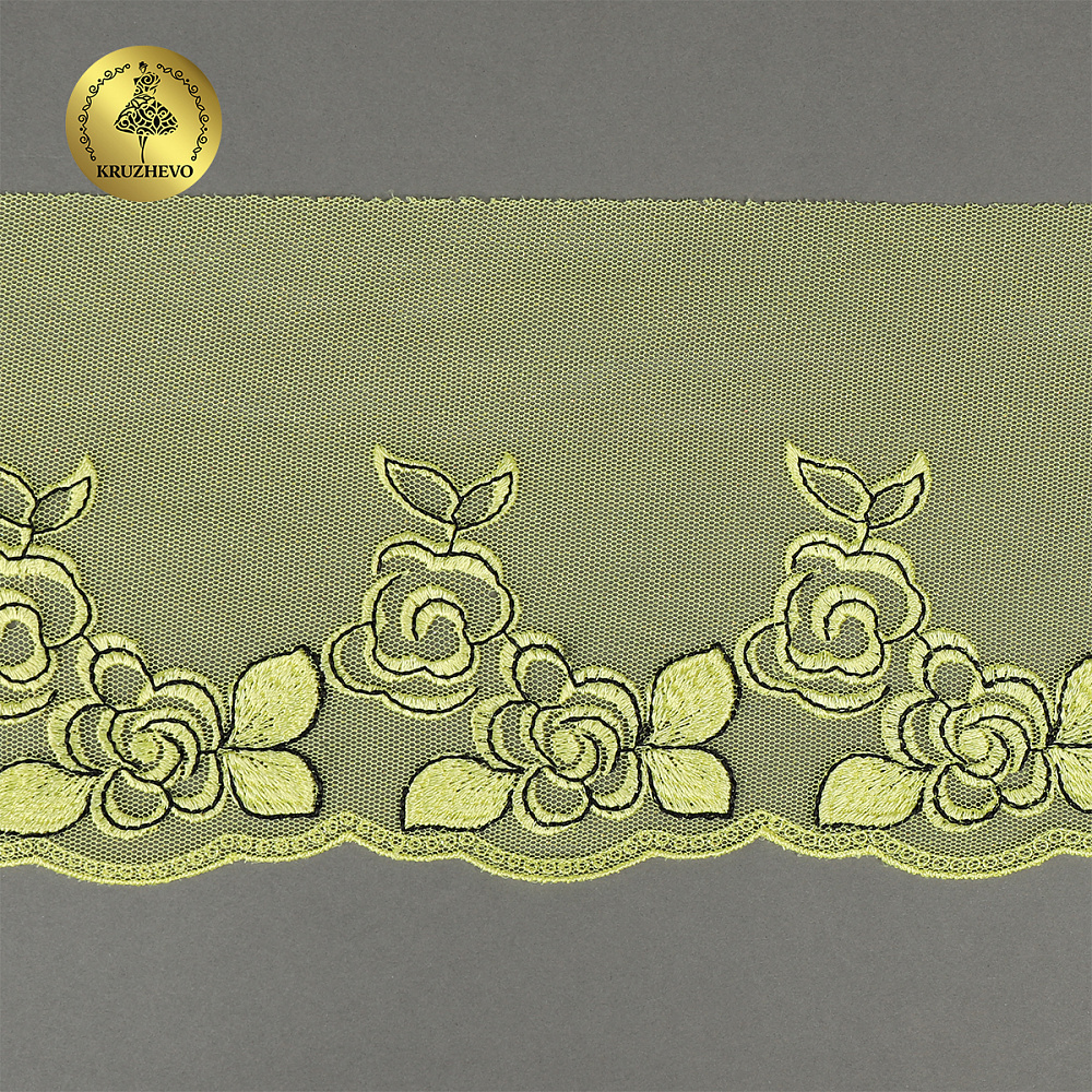 Нежное и приятное кружево - вышивка на сетке. Аккуратный на вид, идеально для отделки нижнего белья, одежды, текстиля.
