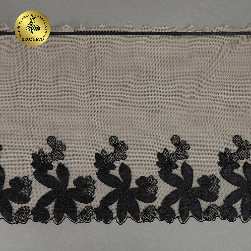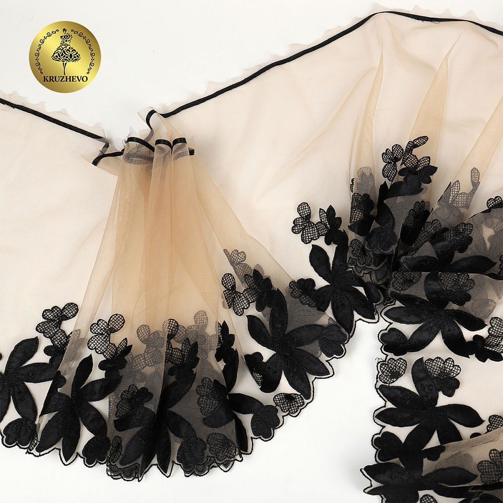 Кружево на сетке (вышитое) 270мм цв.телесный+чёрный, левая, 6,75м, Kruzhevo