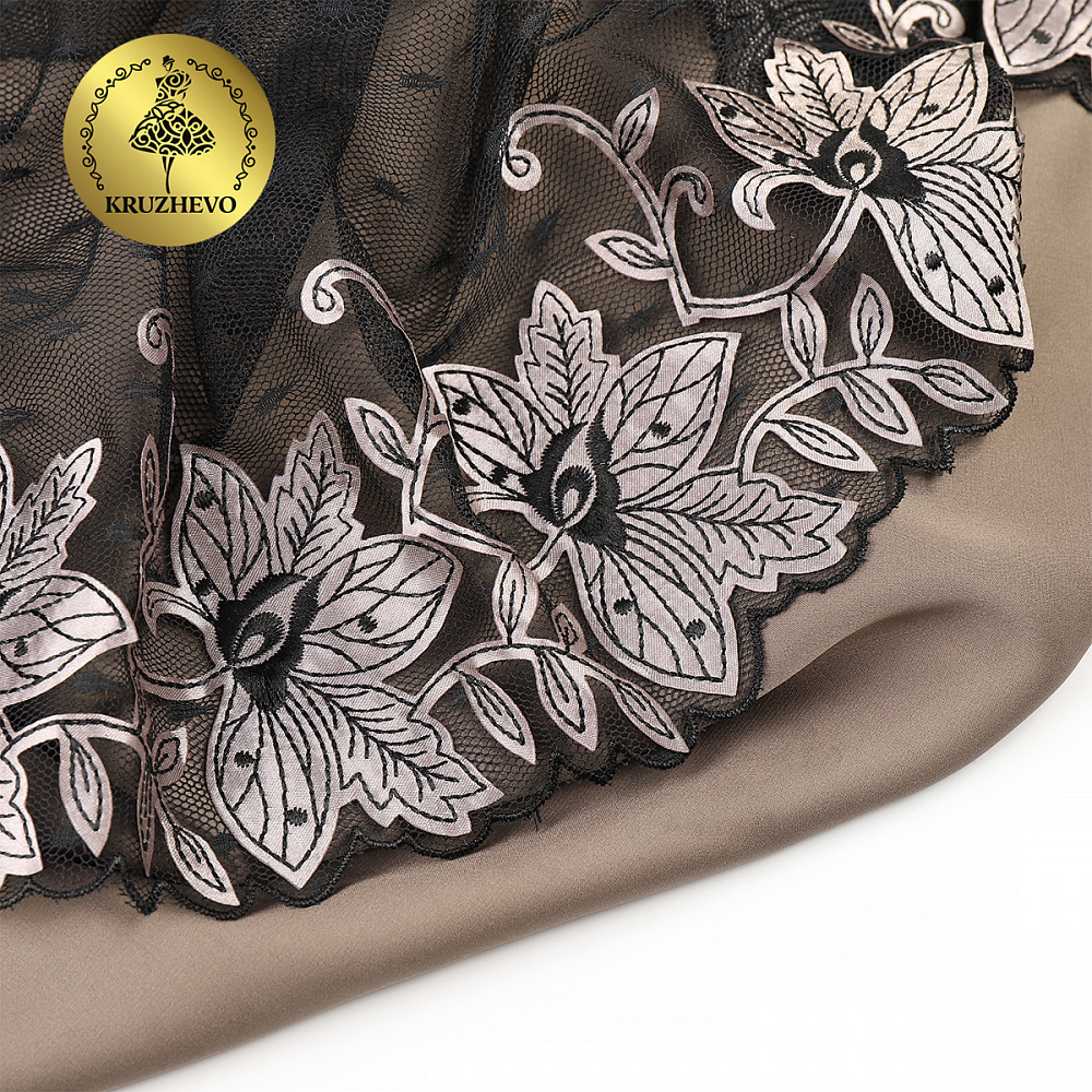 Очень нежное и приятное кружево Вышивка на сетке. Сеточка мягкая, приятная на ощупь, хорошо драпируется. Вышивка выполнена очень аккуратно. Идеально для отделки нижнего белья, одежды, текстиля.