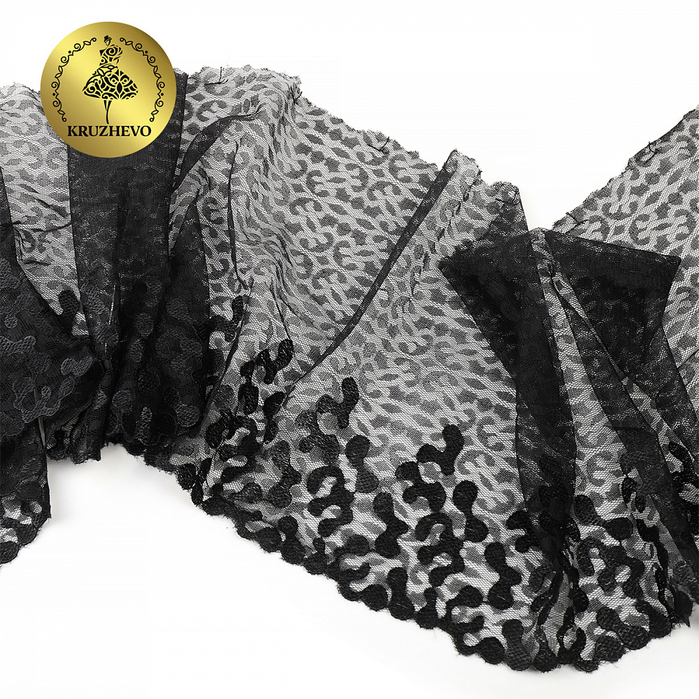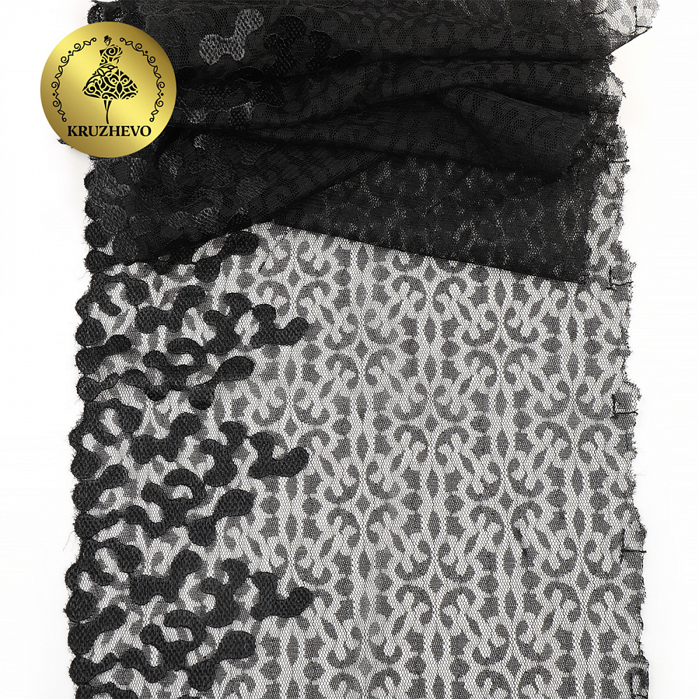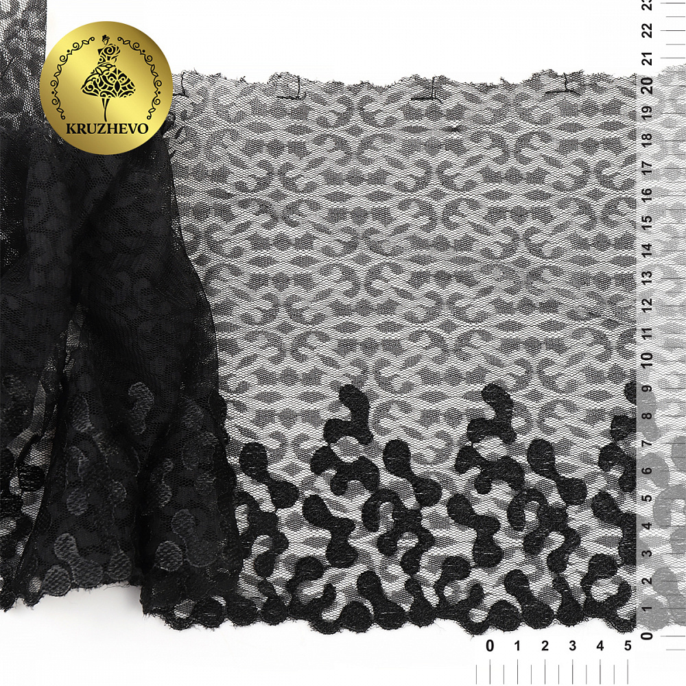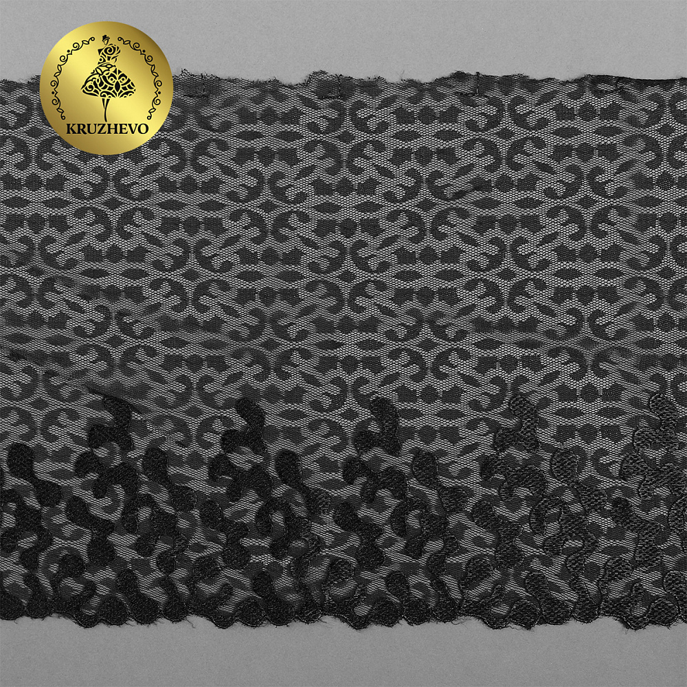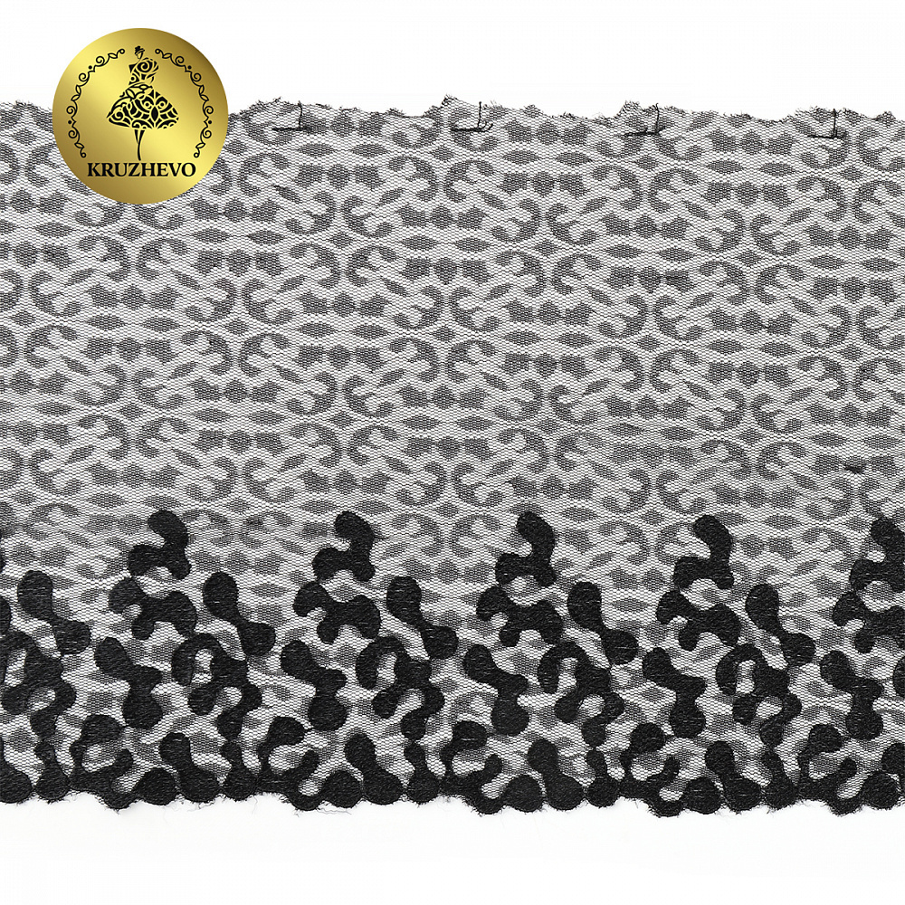 Кружево на сетке широкое 205 мм, диз.OG48, цв.черный, левая, 6м, Kruzhevo