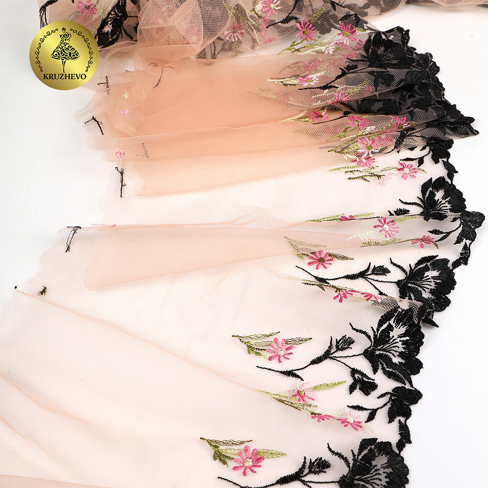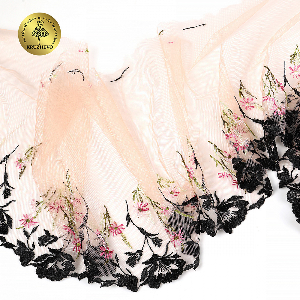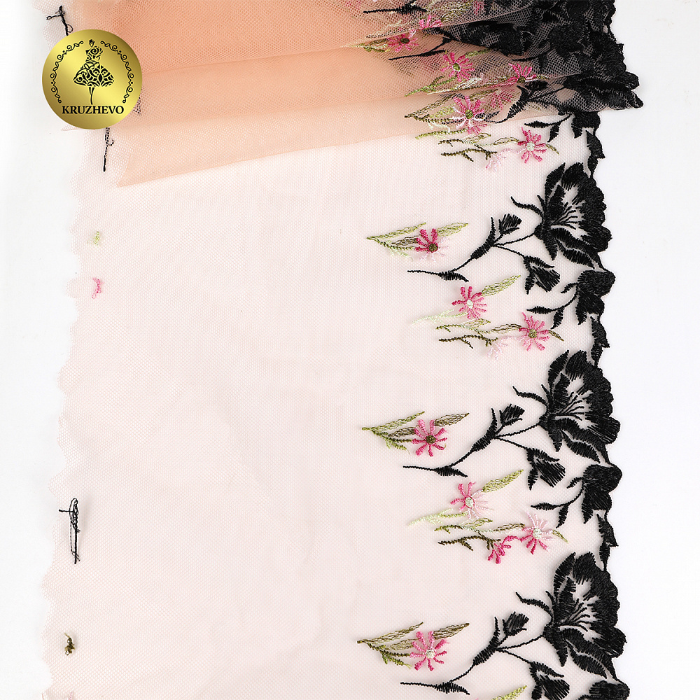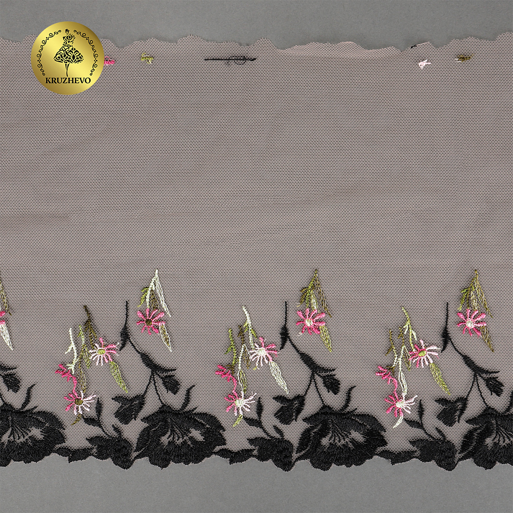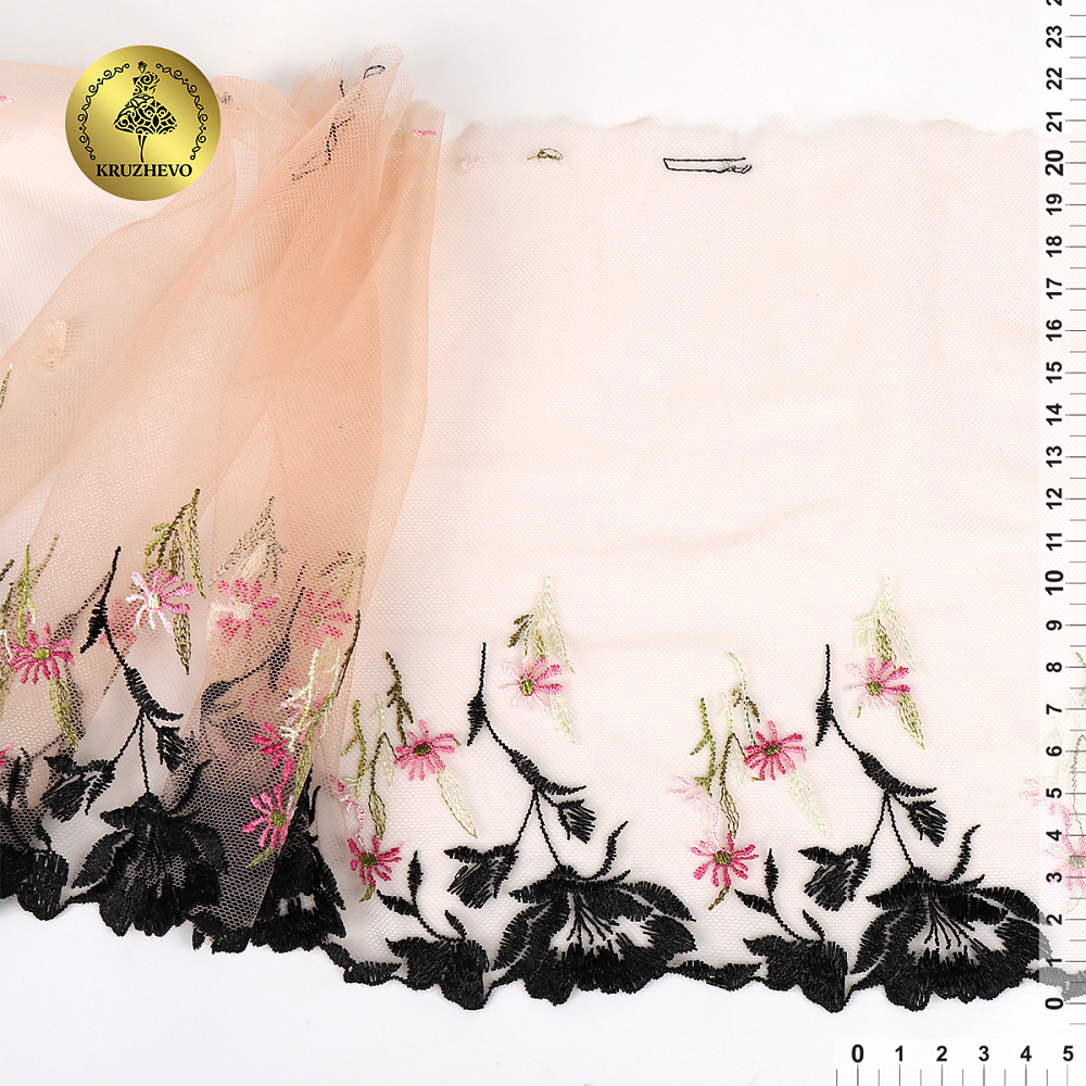 Кружево на сетке (вышитое) 210 мм, цв.мульти, правая, 6,85м, Kruzhevo