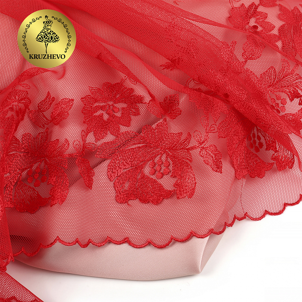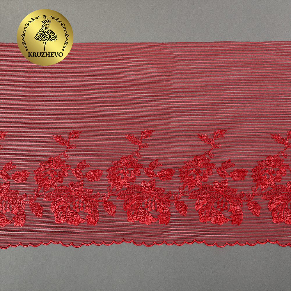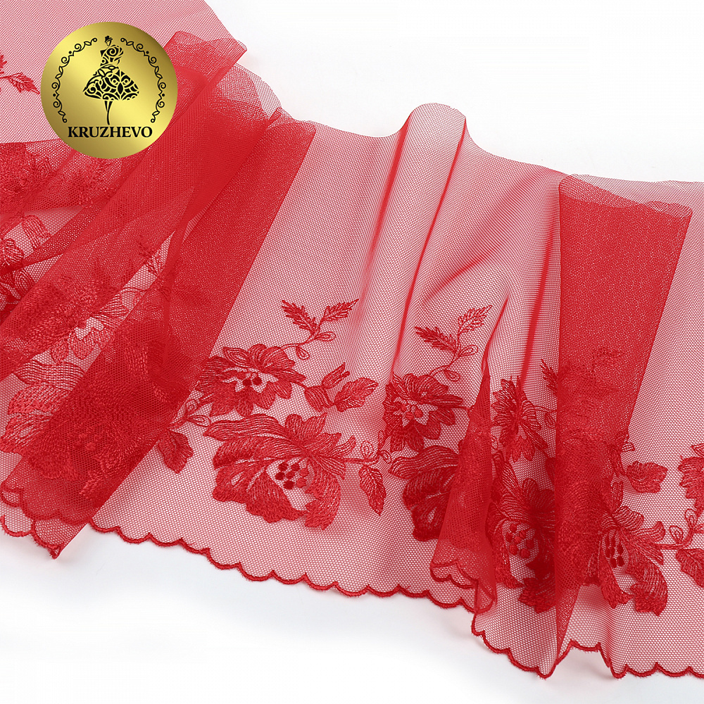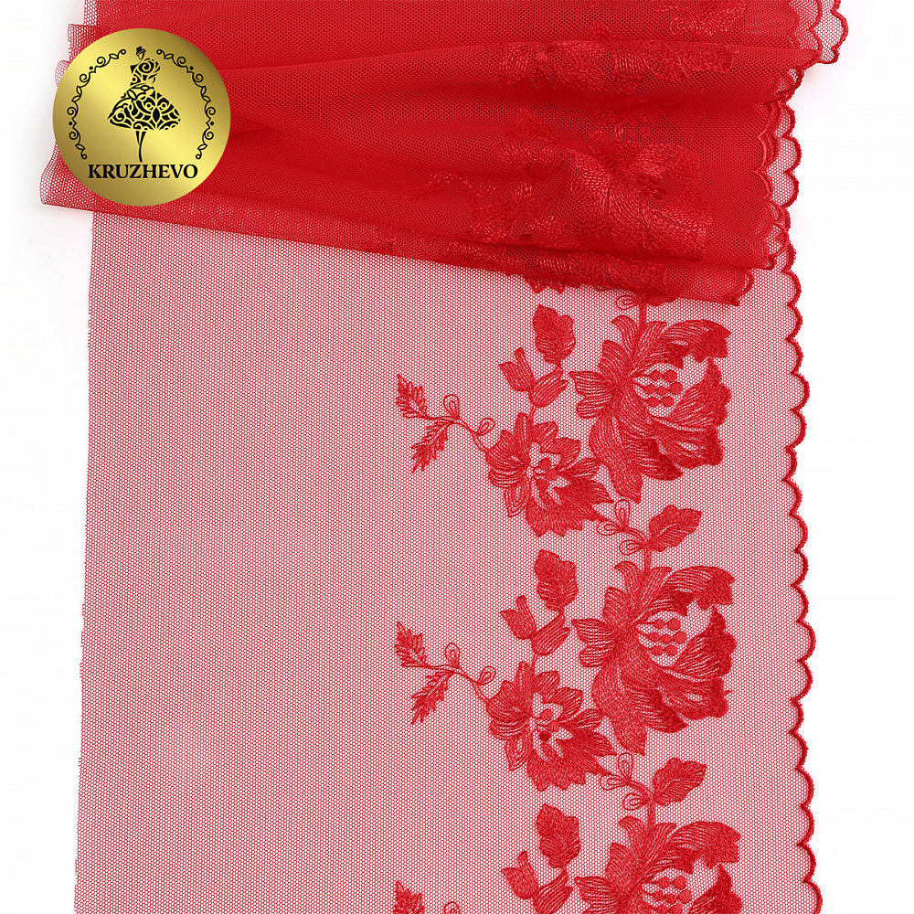 Кружево на сетке широкое 225 мм, OG44, цв.красный, правая уп.6м, Kruzhevo