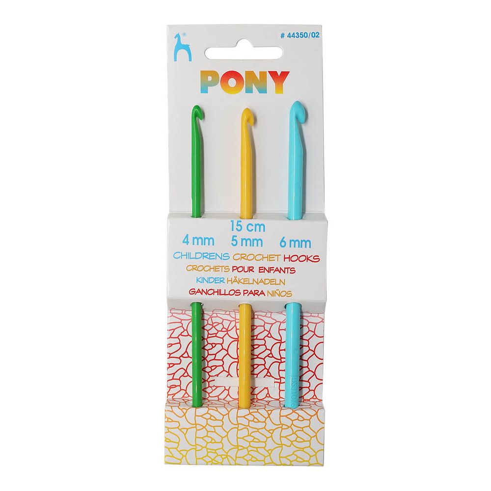 Крючки для вязания детские Pony ⌀4,0, 5,0, 6,0 мм, 15 см, пластик, цветные, 3 шт 44350