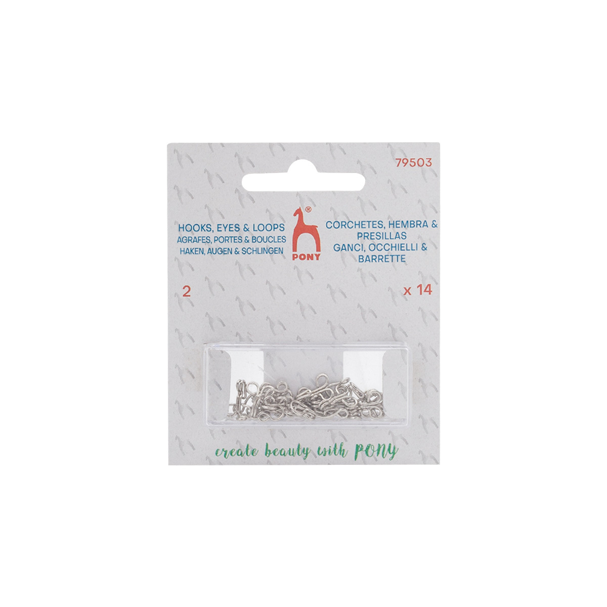 Крючки пришивные 11 мм, 14 шт, с 2 петлями, серебристые, Pony, 79503