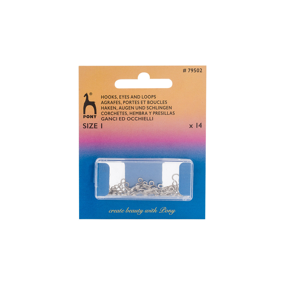 Крючки пришивные 9 мм, 14 шт, с 2 петлями, серебристые, Pony, 79502