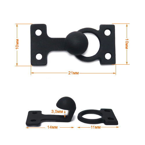 Крючки пришивные декоративные 10х21 мм, черная резина, 10 шт