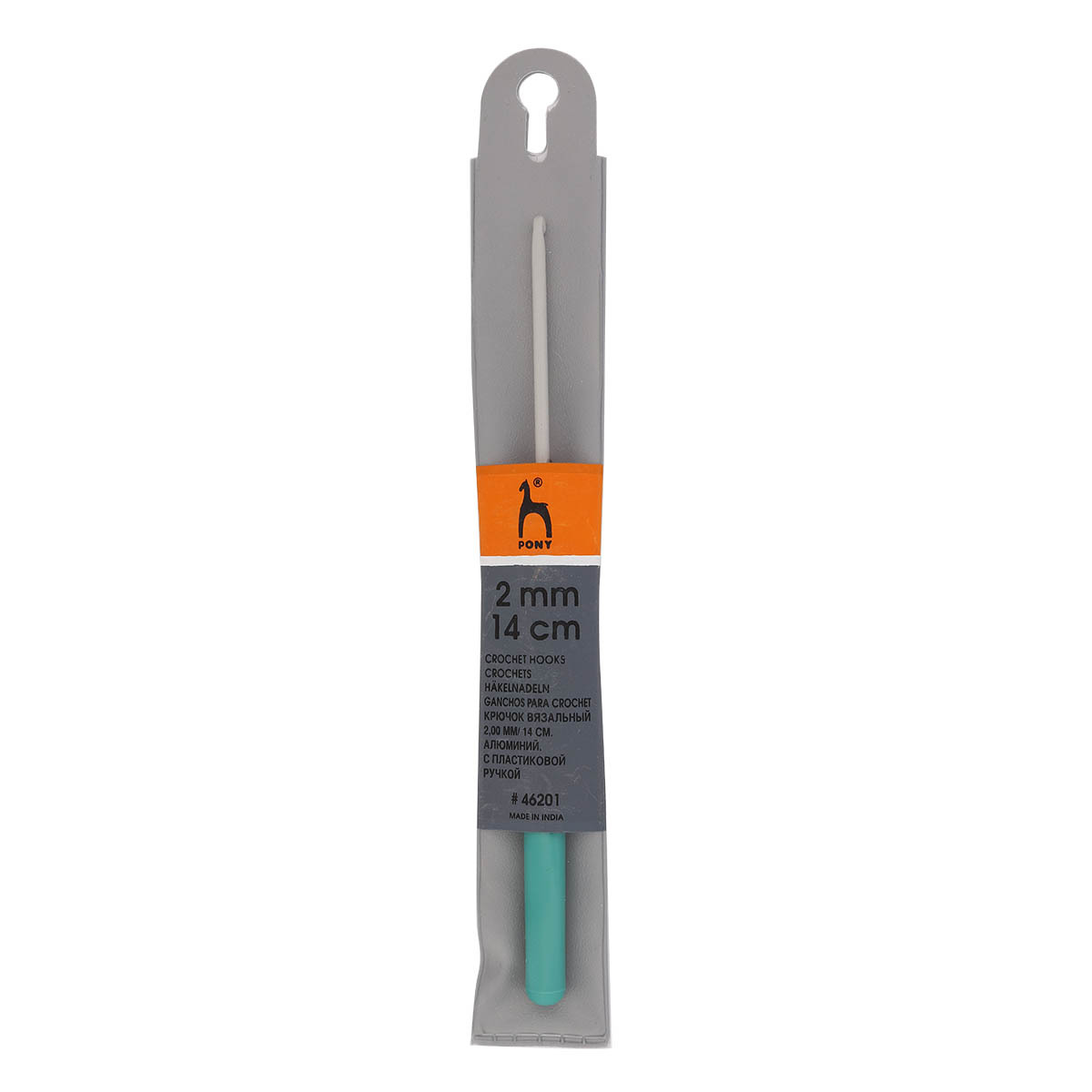 Крючок для вязания Pony с пластиковой ручкой ⌀2,0 мм, 14 см, алюминий 46201