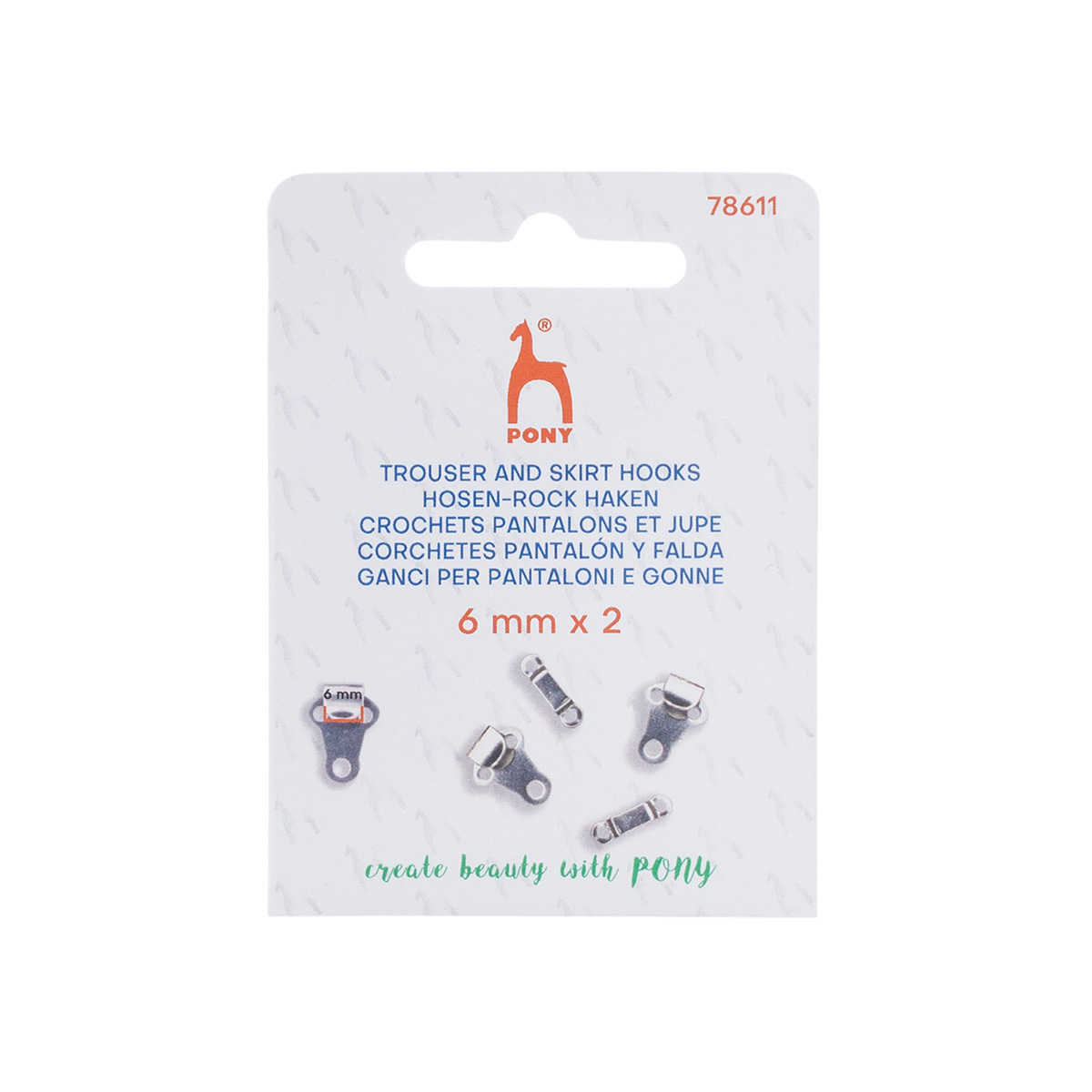 Крючки брючные (юбочные) пришивные 6 мм, 2 пары, никель, Pony, 78611